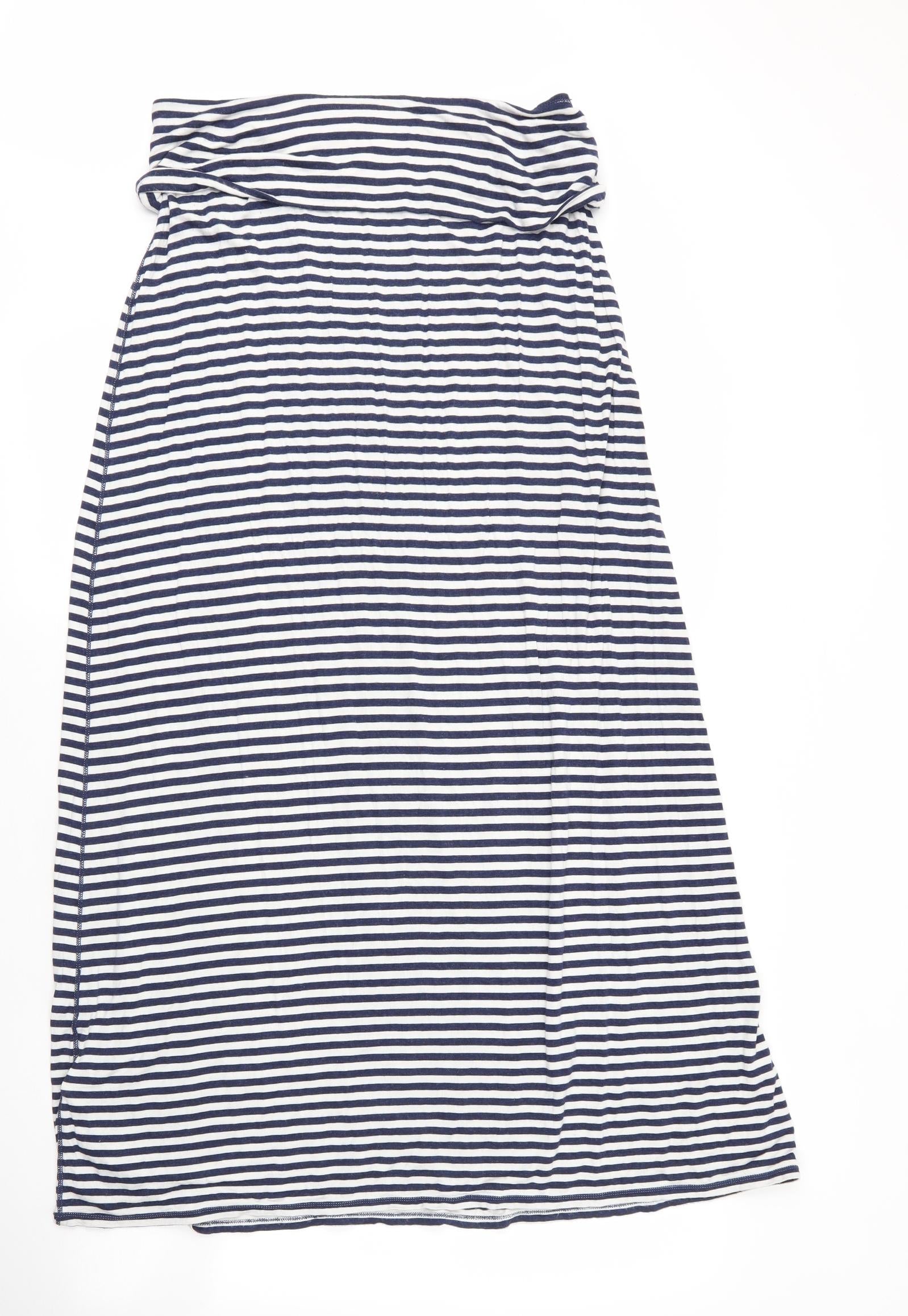 Max Studio Womens Blue Striped Elastane Maxi Size M Off the Shoulder