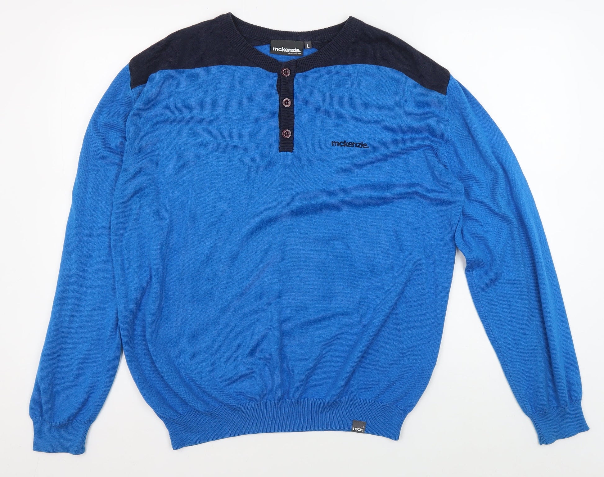 McKenzie Men's Blue Henley Jumper, L, Casual Style