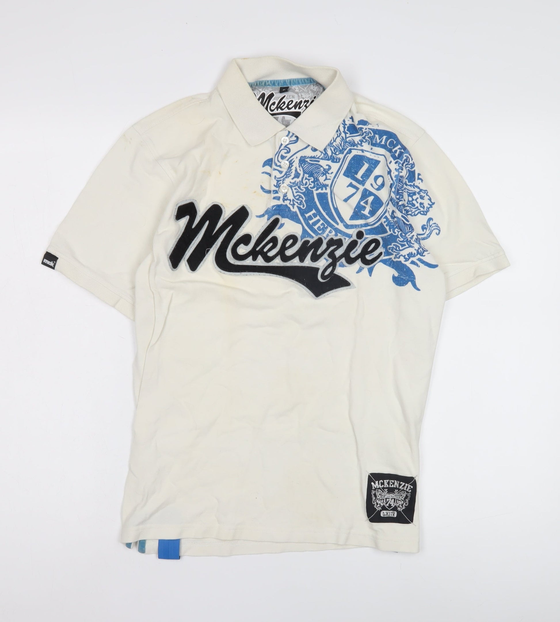 McKenzie Men's White Polo Shirt, S, Graphic Logo, Casual