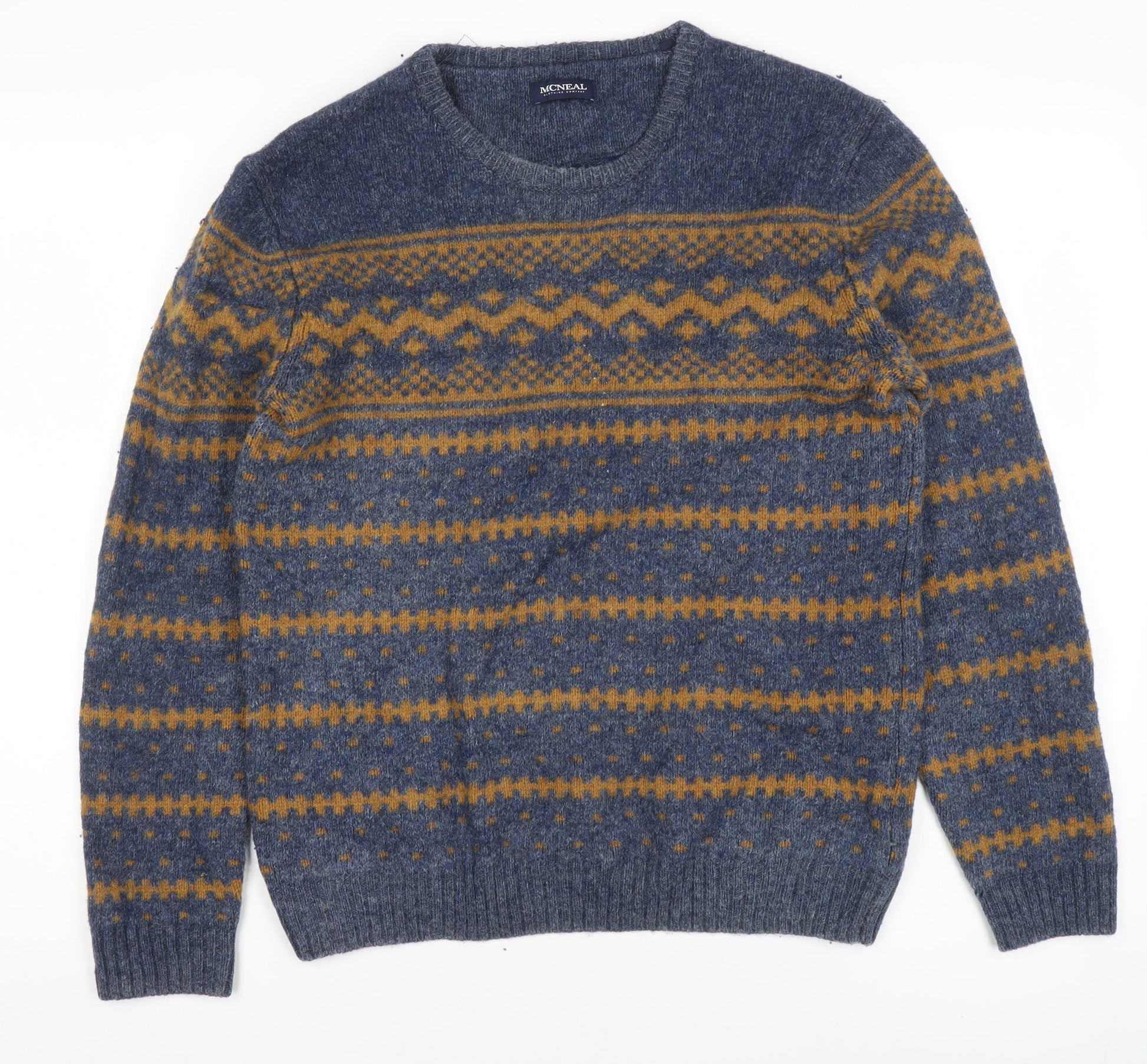 MCNEAL Men's Blue Fair Isle Wool Jumper Size M Crew Neck Pullover