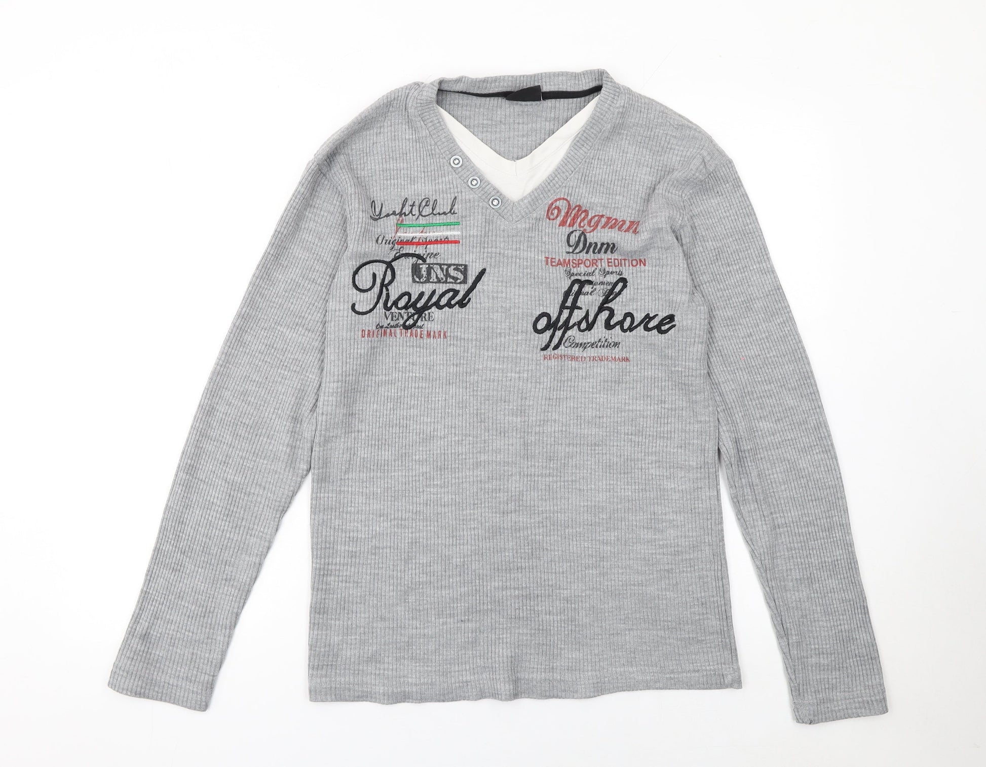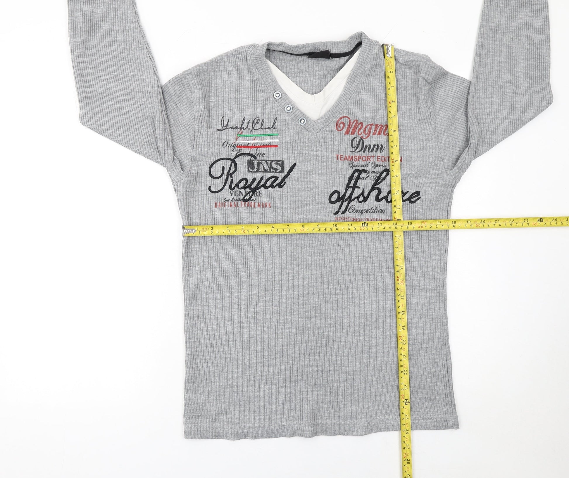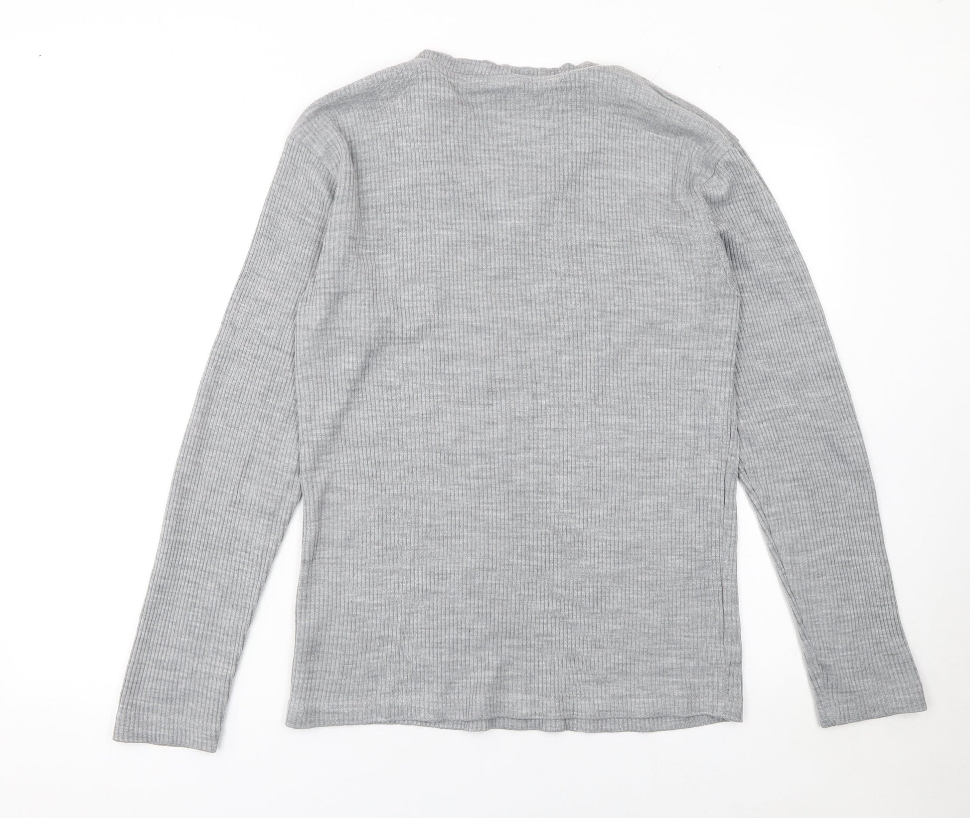 MEGAMAN Mens Grey Henley Knit Jumper M Long Sleeve Sport Style