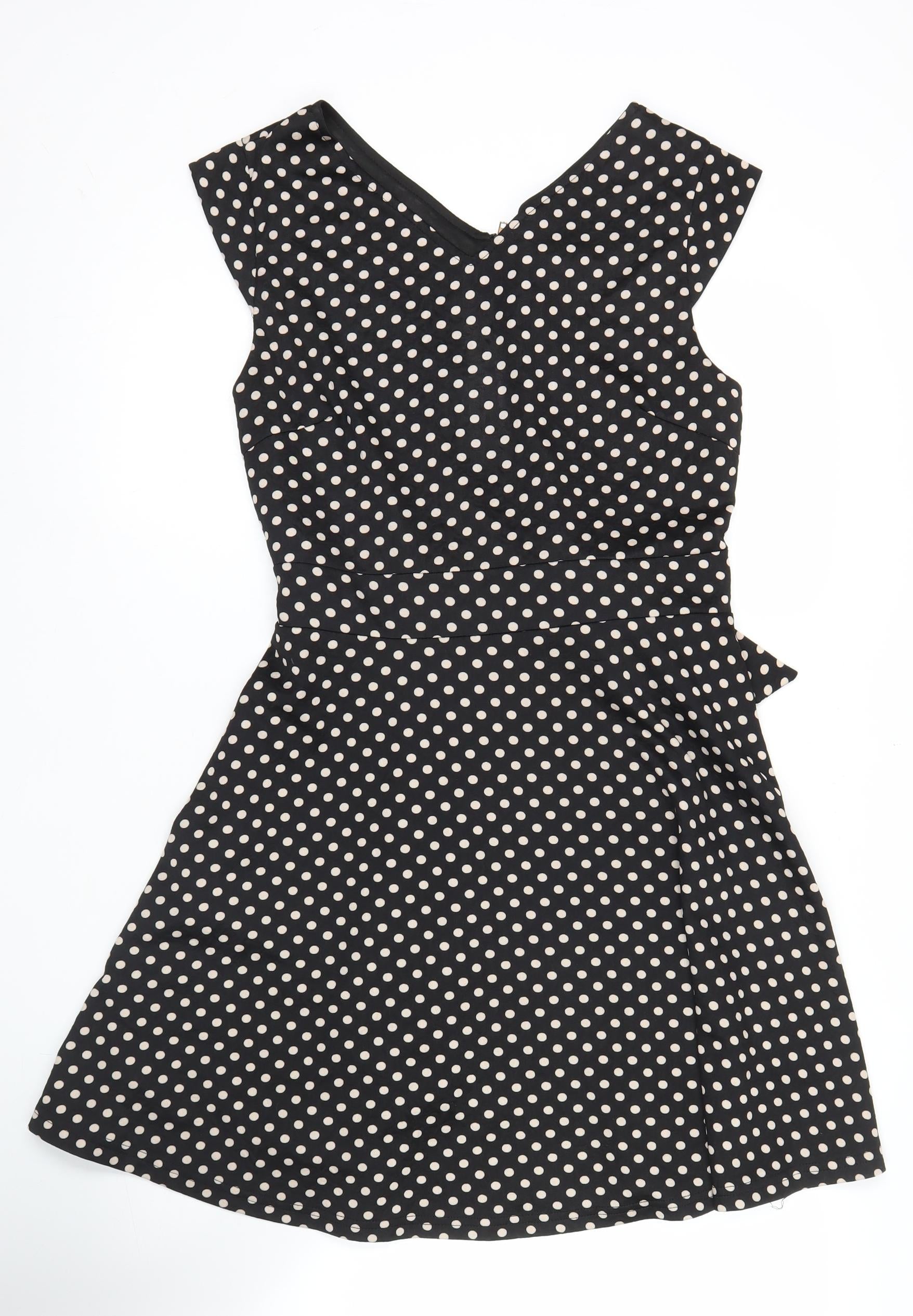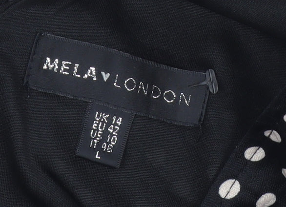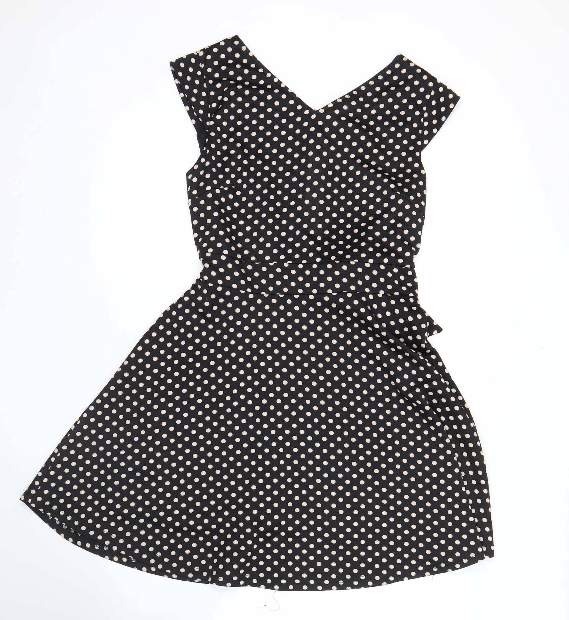 Mela London Women’s Black Polka Dot Fit & Flare Dress Size 14