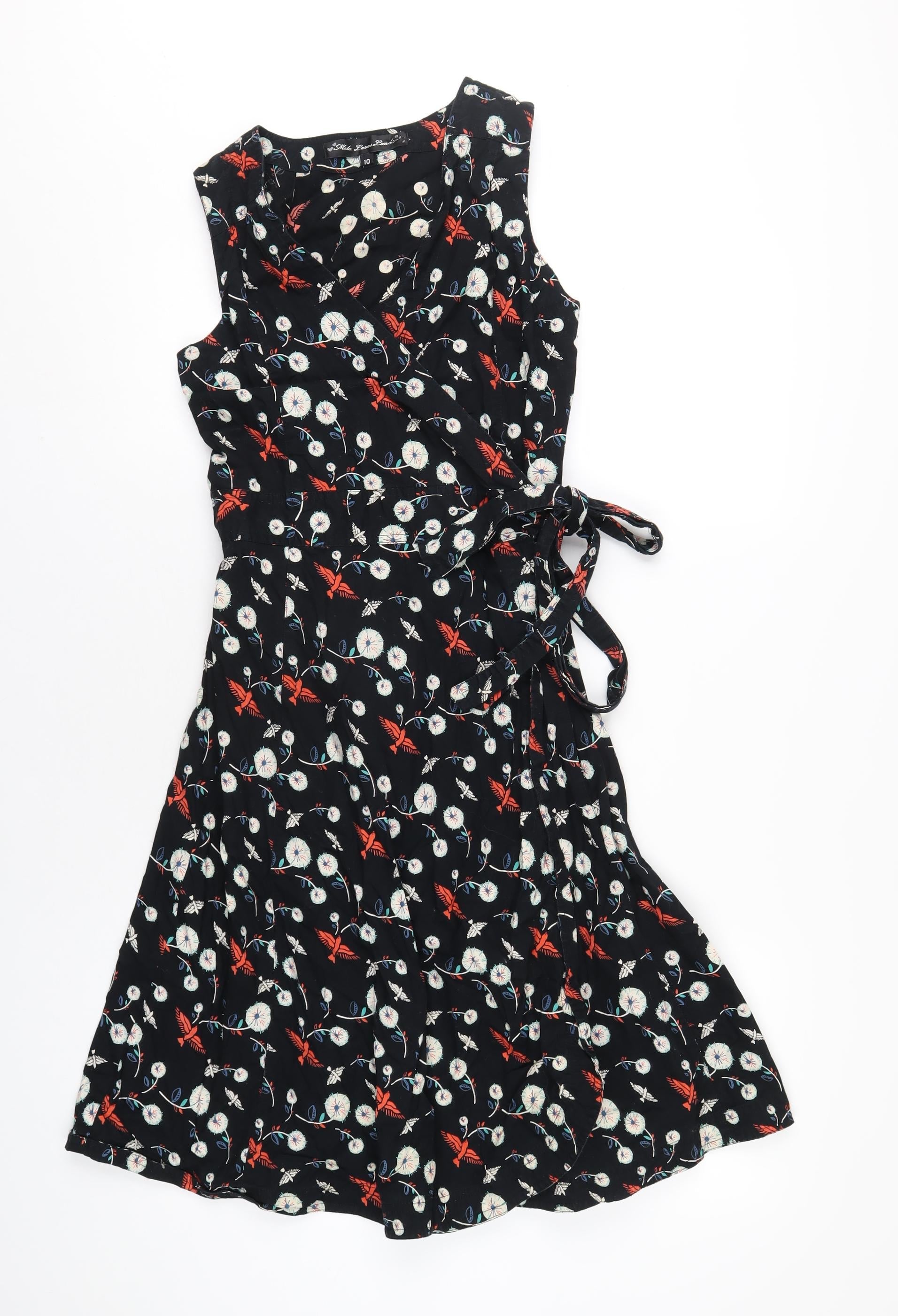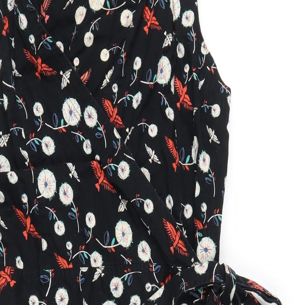 Mela London Womens Black Geometric Cotton Wrap Dress Size 10 V-Neck Tie