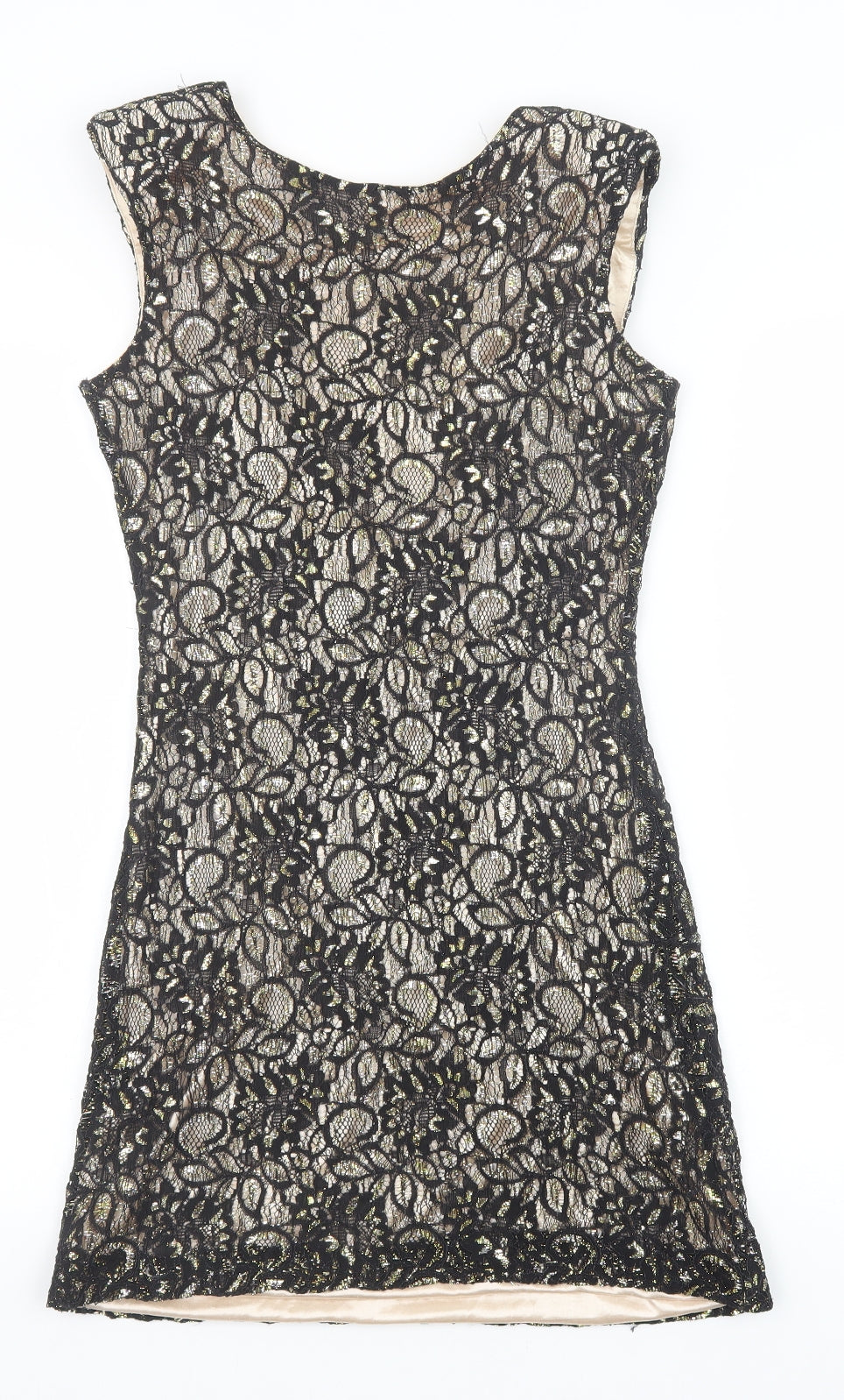 Mela London Womens Black Geometric Polyester A-Line Size 10 Round Neck Pullover
