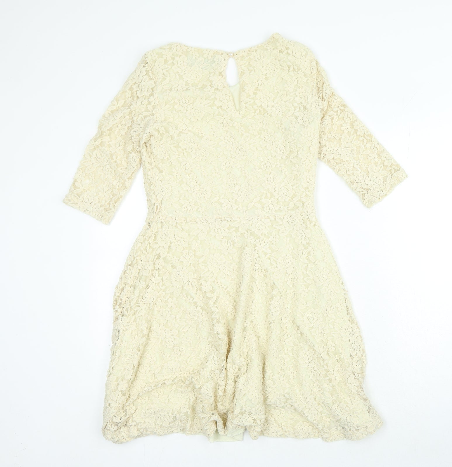 Mela London Womens Gold Polyester A-Line Size 10 Round Neck Hook & Loop