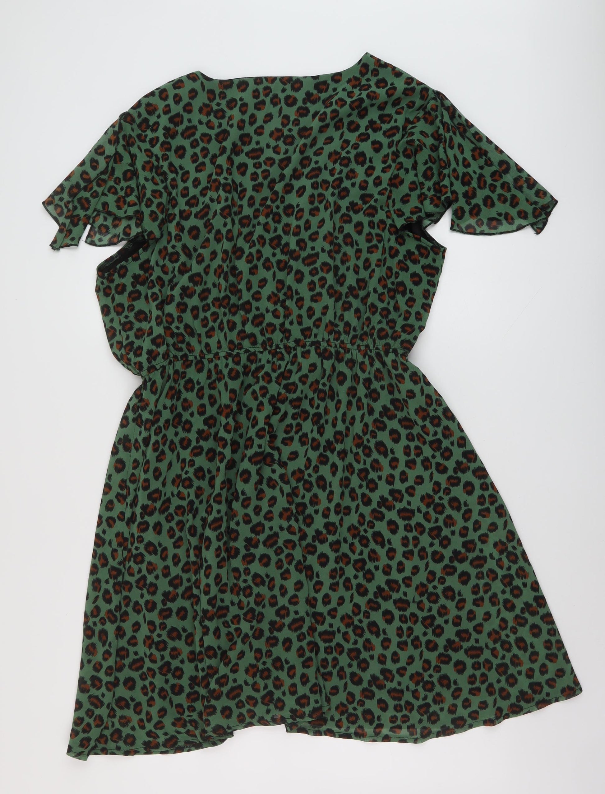 Mela London Womens Green Animal Print Polyester A-Line Size 22 V-Neck Pullover