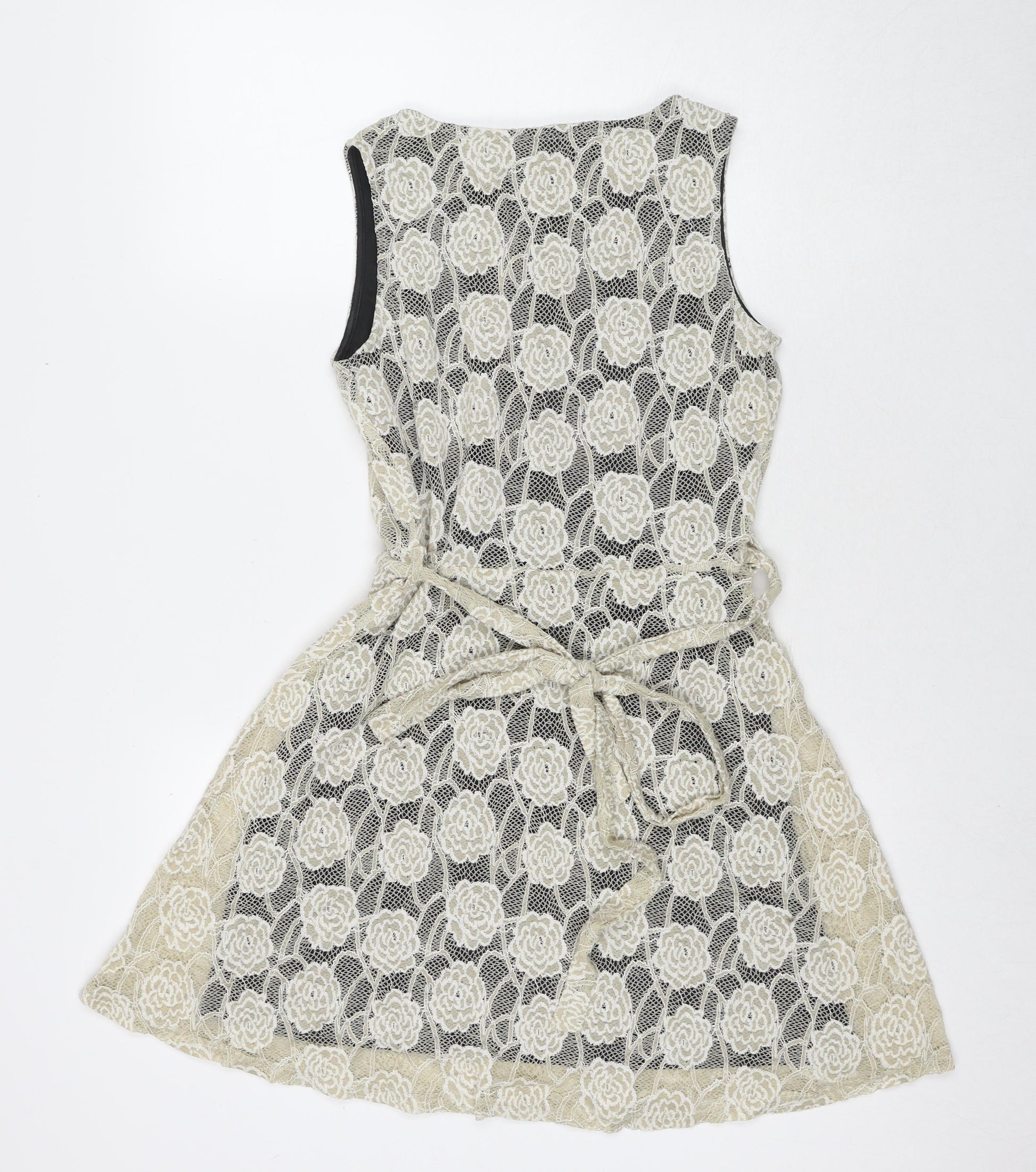 Mela London Womens Ivory Polyester A-Line Size 8 Round Neck Pullover
