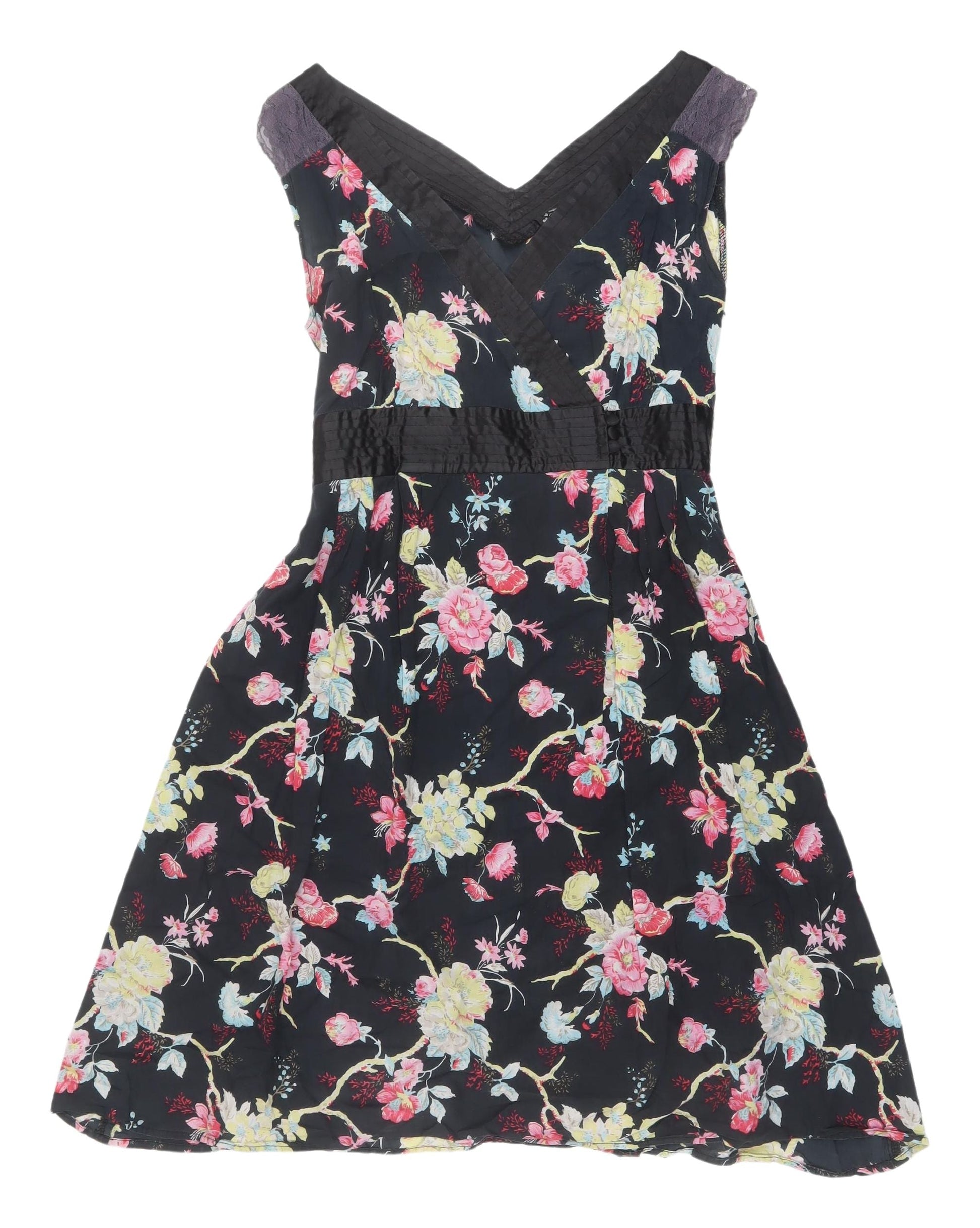 Mela Loves London Black Floral A-Line Dress - Size S, V-Neck