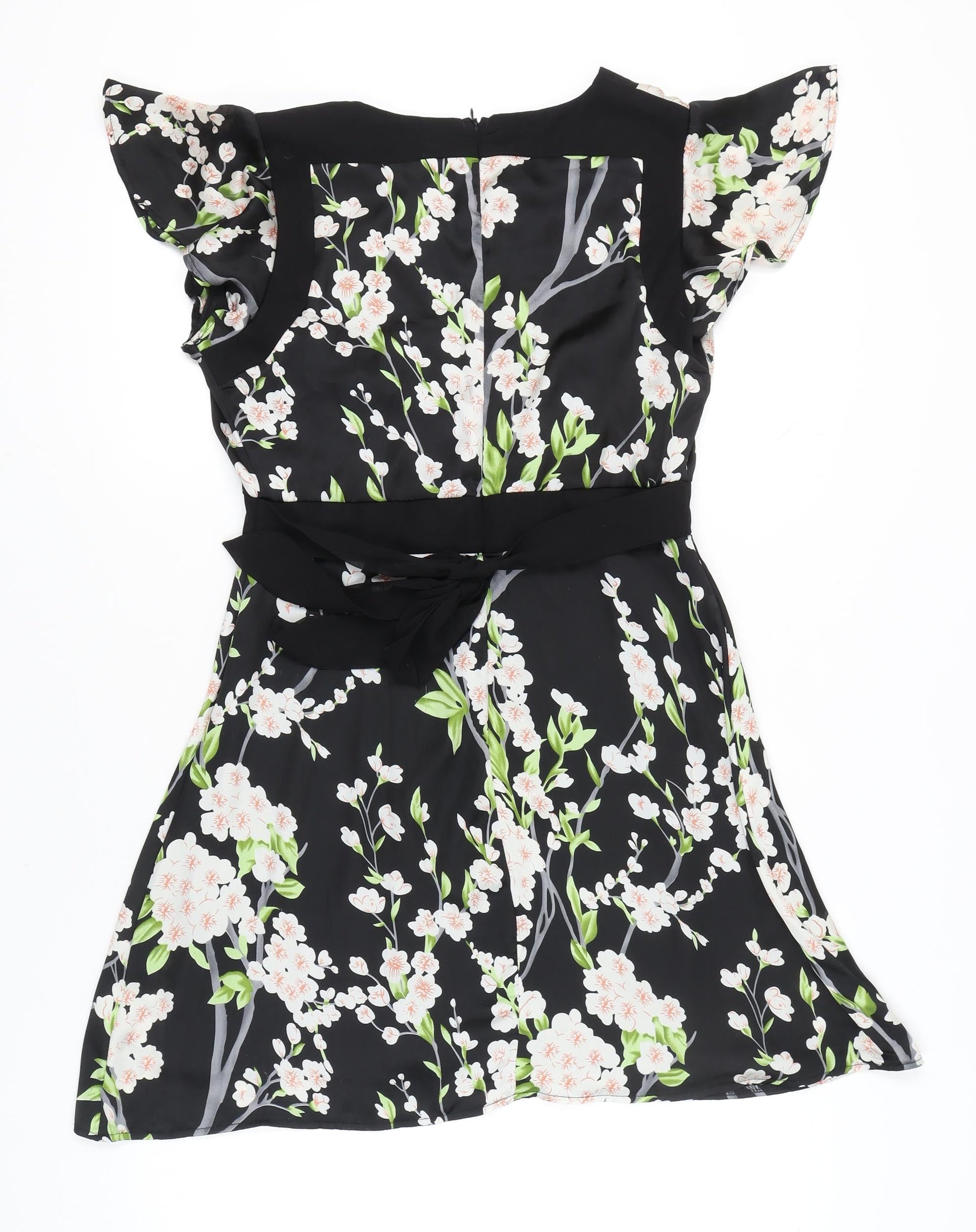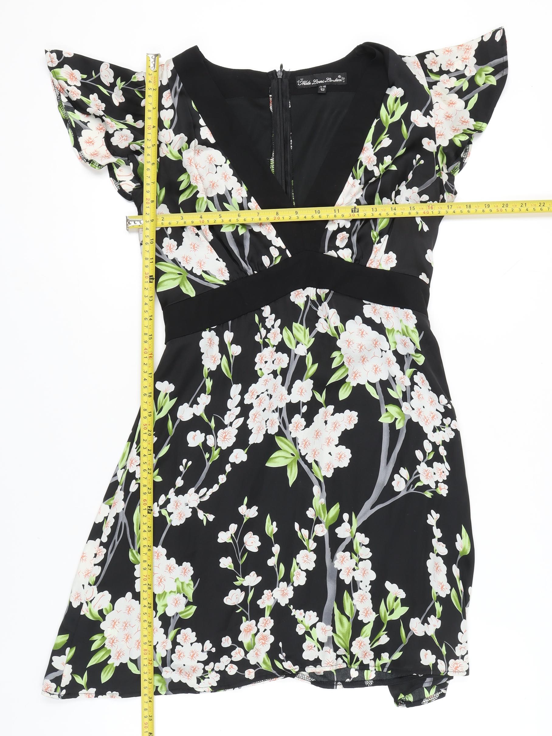 Mela Loves London Women Black Floral A-Line Short Dress Size 12