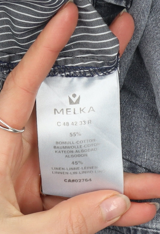 Melka Men's Grey Cotton Linen Chino Trousers 42R Classic Fit