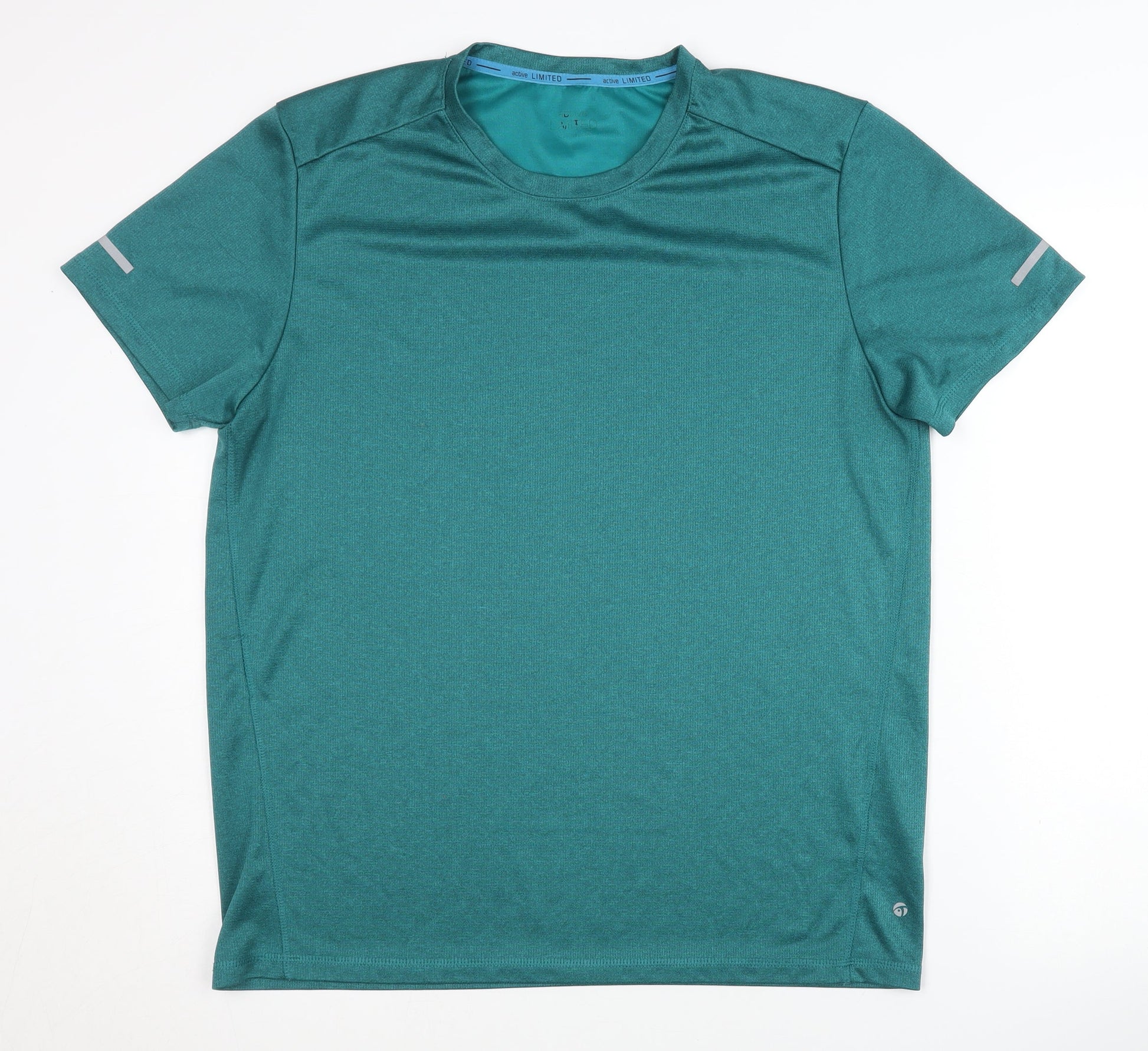 Men's Green Activewear T-Shirt, Polyester, Short Sleeve Size L