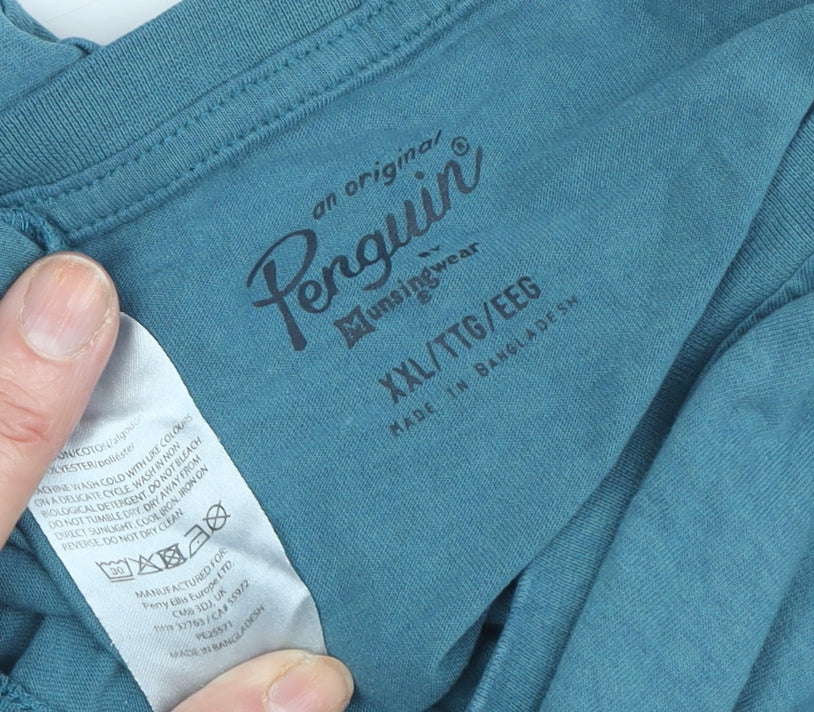 Men's Penguin Blue Crew Neck T-Shirt 2XL Short Sleeve