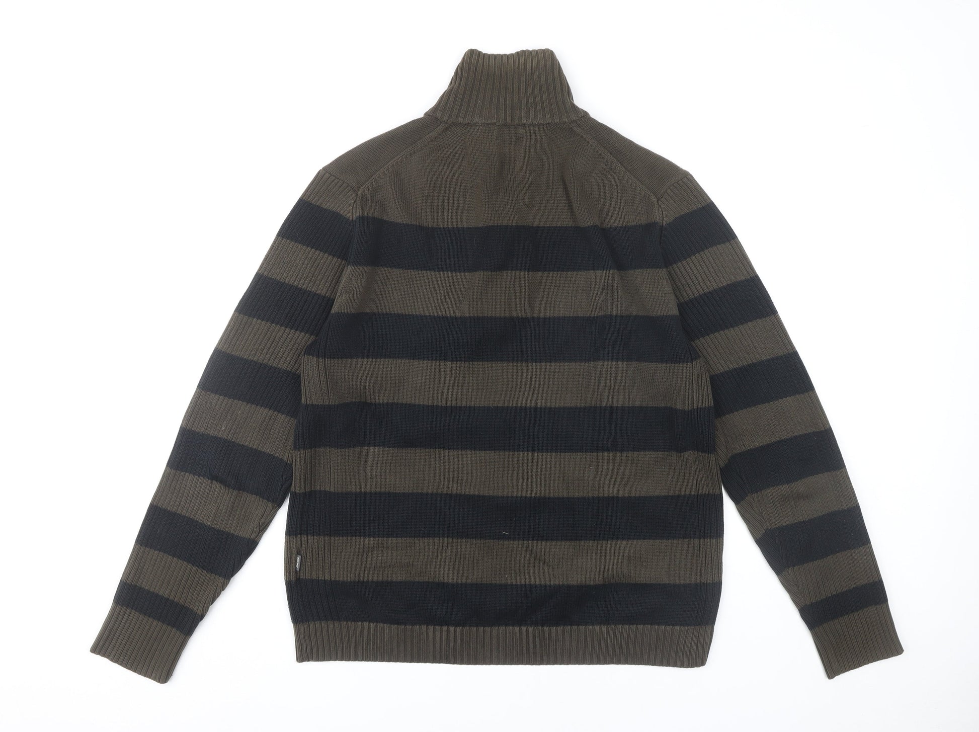 Mexx Men’s Green Black Striped Cotton Jumper M 1/4 Zip High Neck
