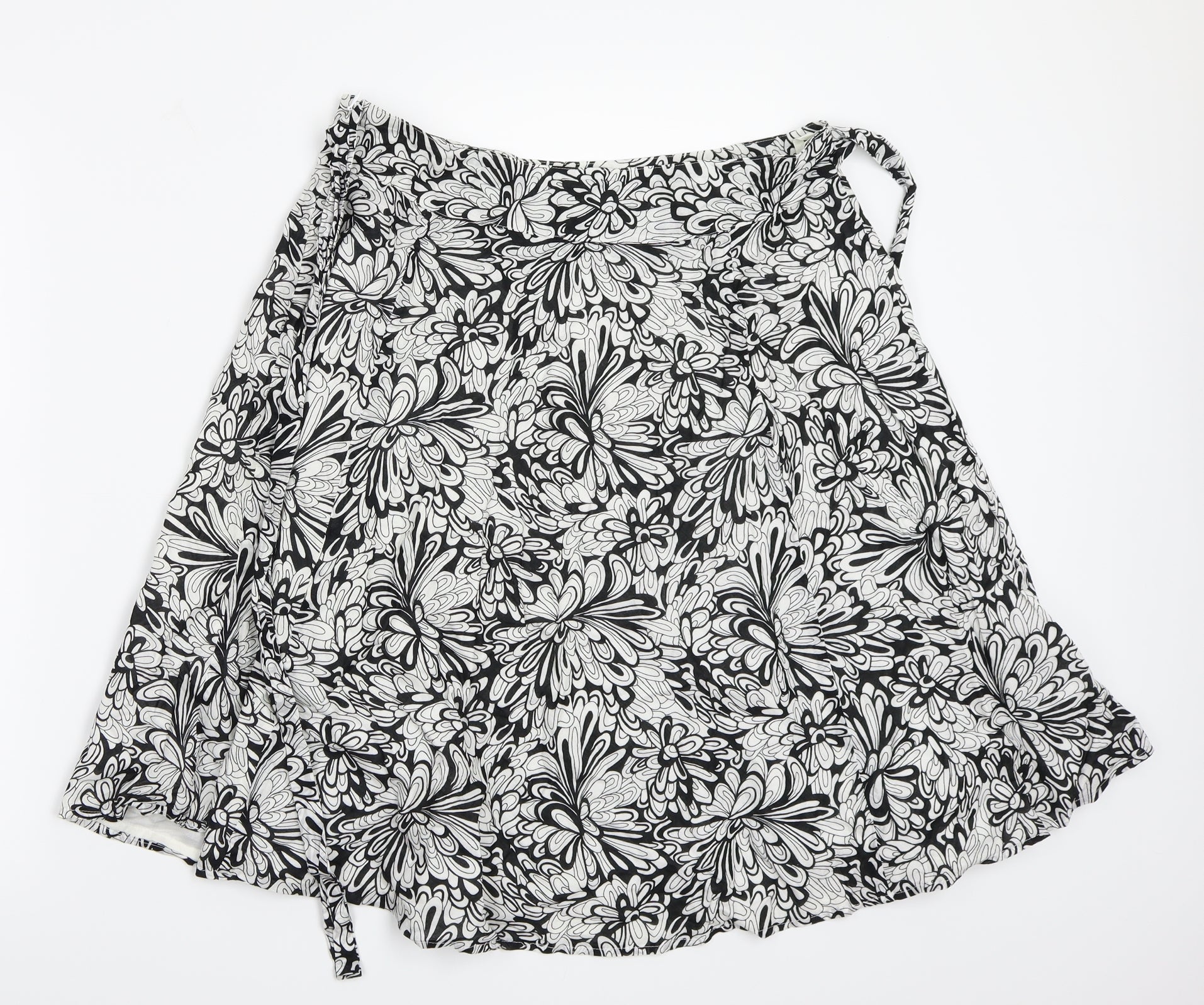 Mexx Womens Black Floral A-Line Skirt Size 12