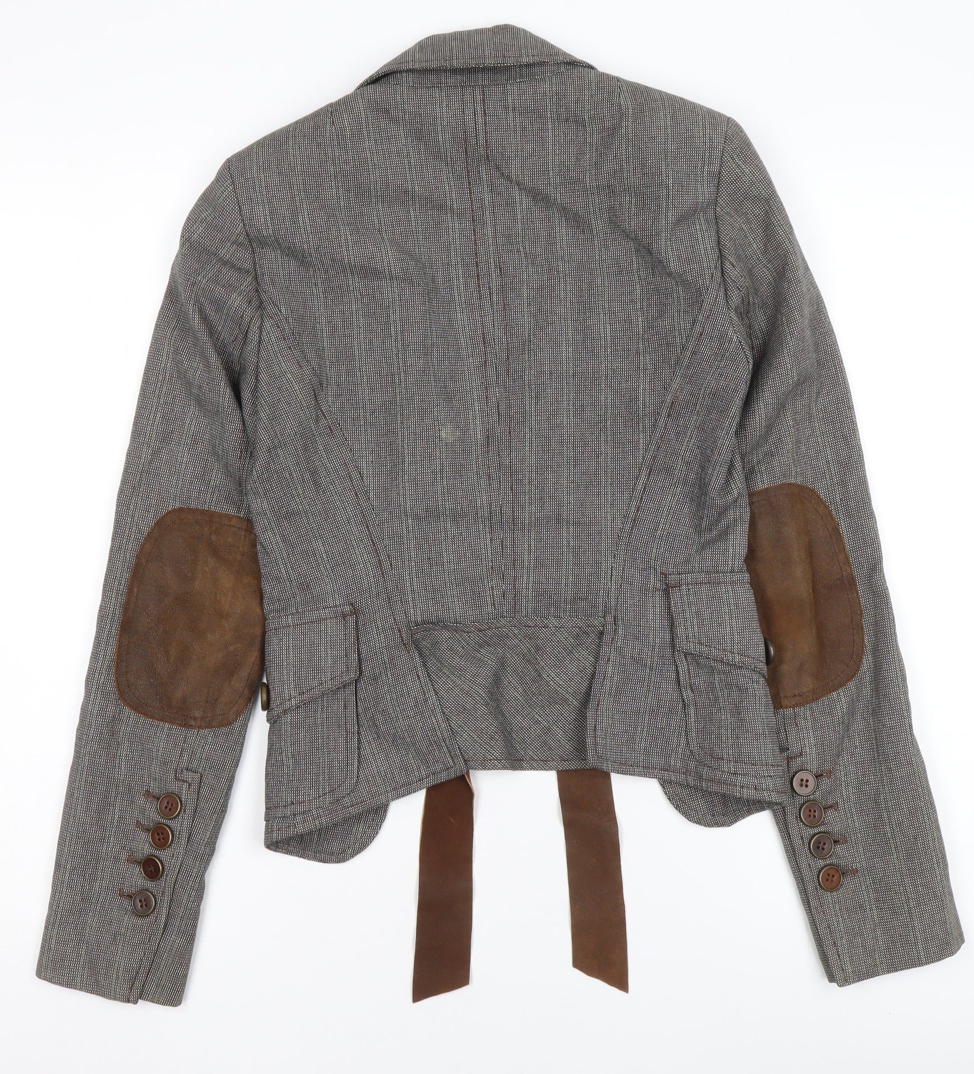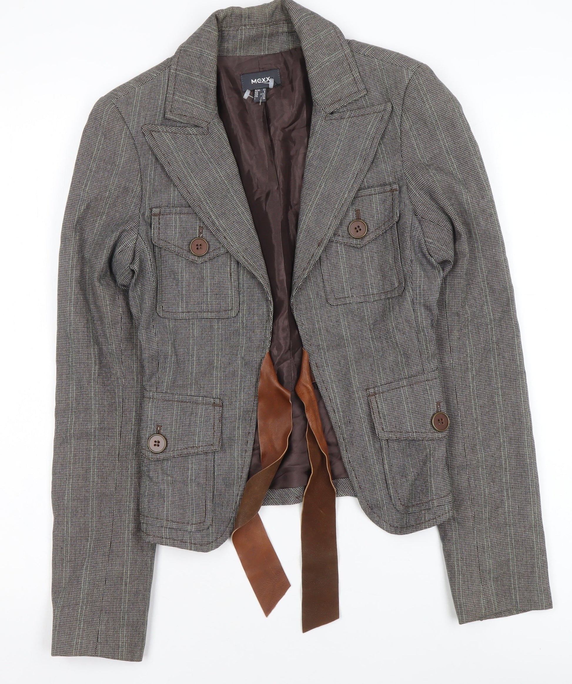 Mexx Women's Grey Checked Tailored Blazer Size 6 Wool Blend Jacket