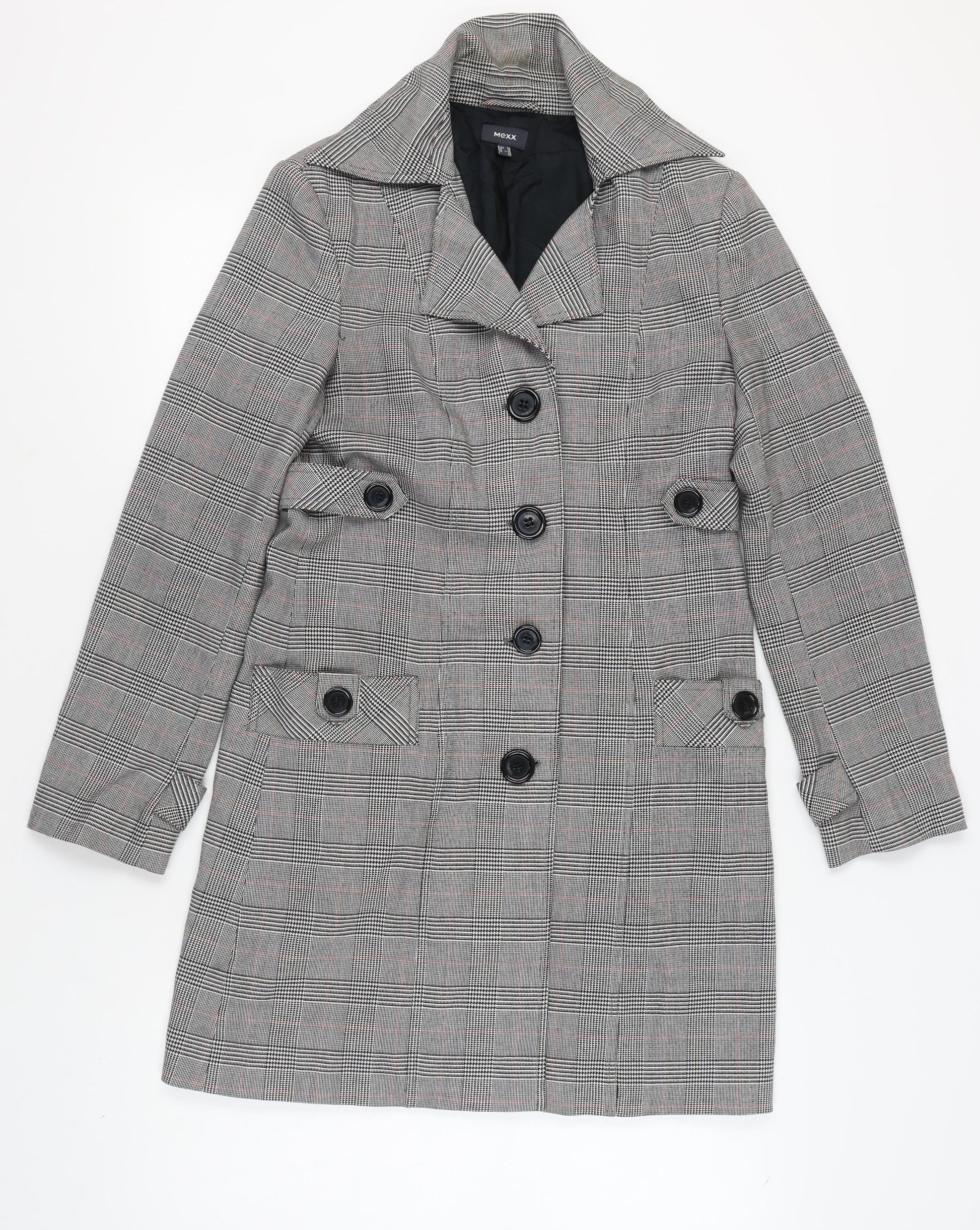 Mexx Women's Grey Trench Coat, Size 10, Check Pattern