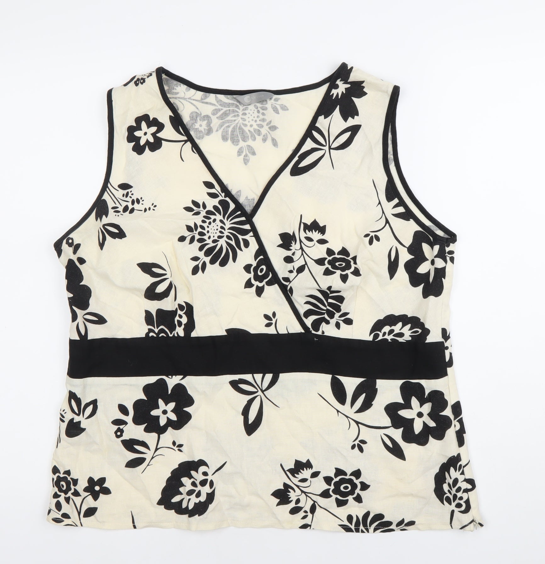 Mia Moda Women’s Black White Floral Wrap Sleeveless Blouse Size 18