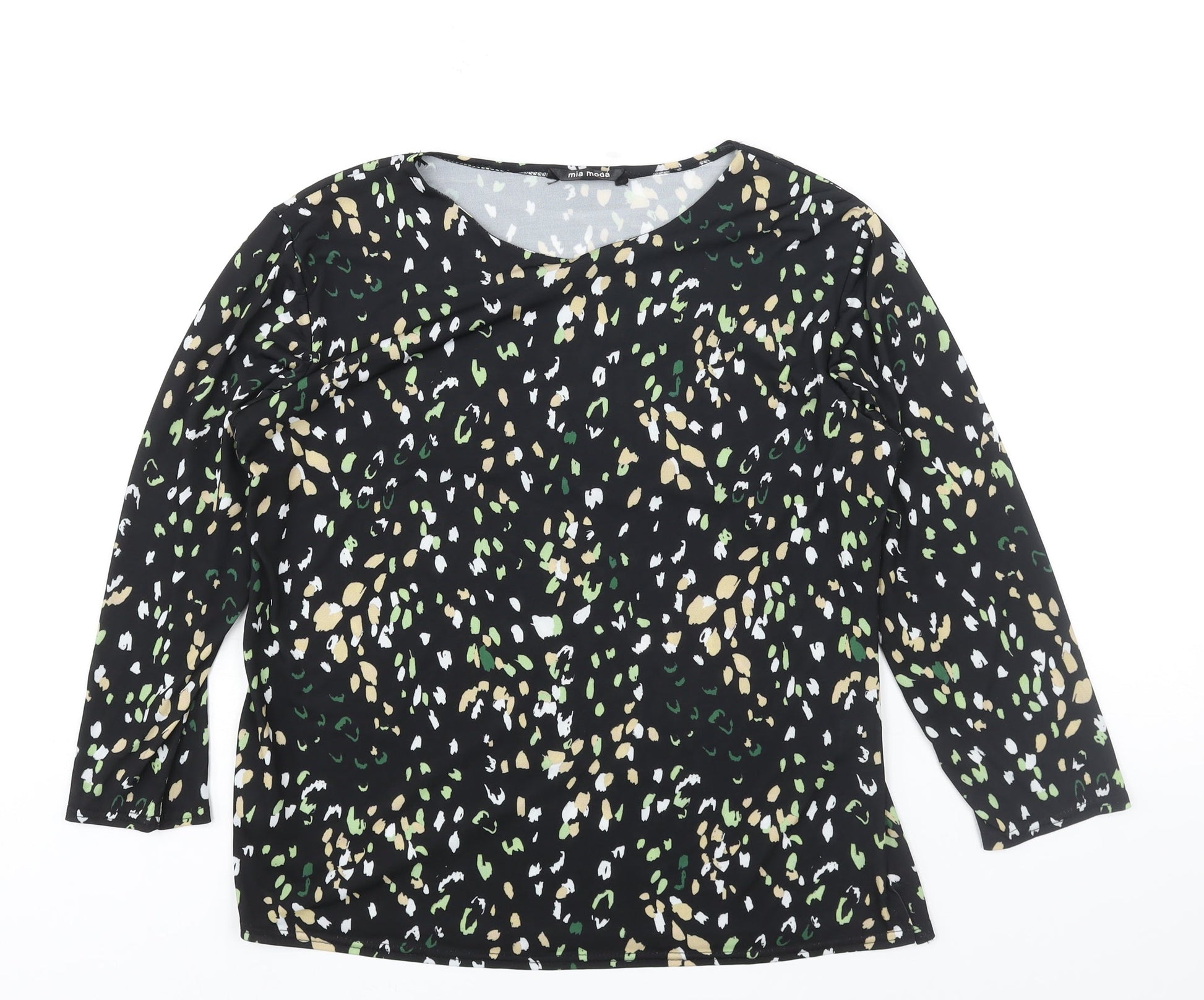 Mia Moda Womens Black Geometric Polyester Basic Blouse Size 16 Round Neck