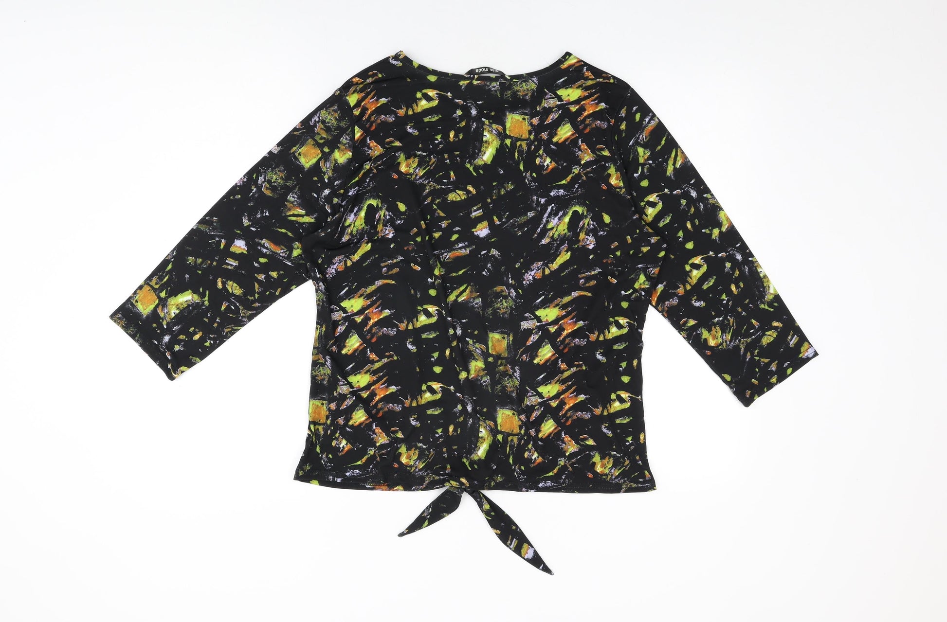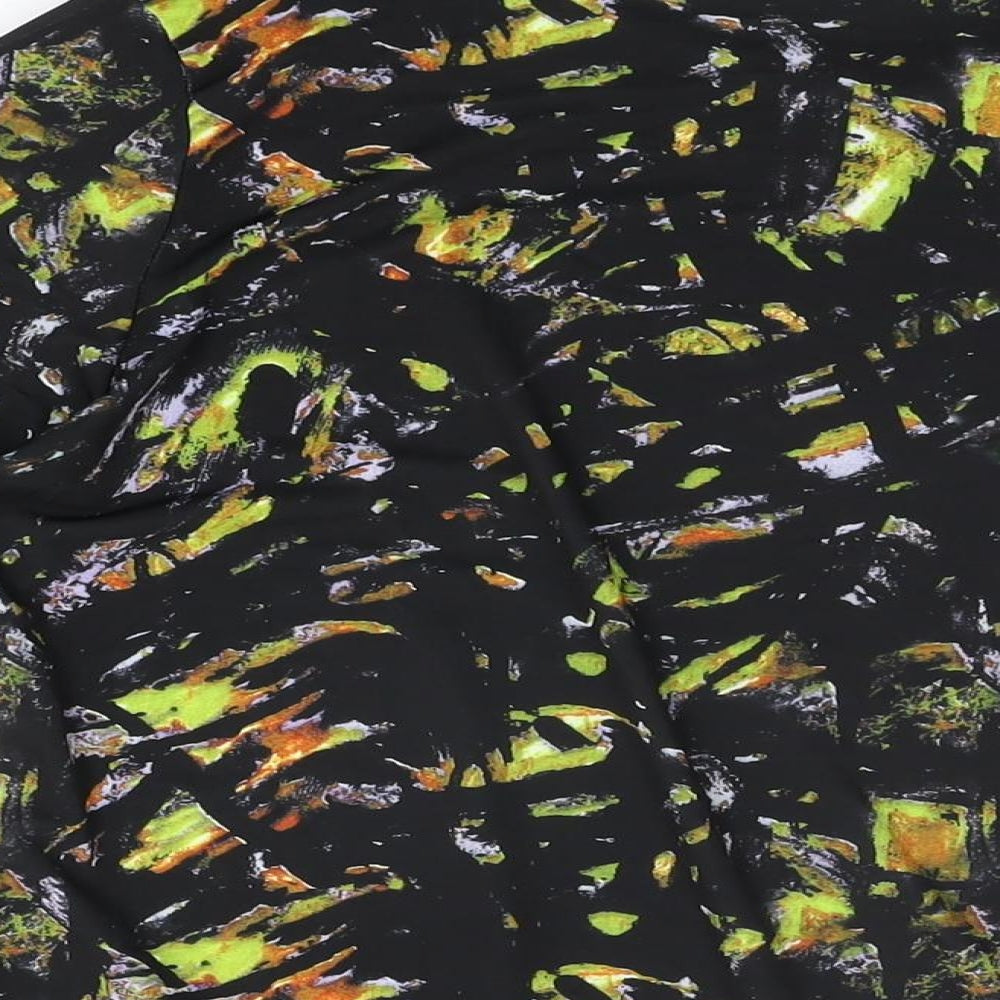 Mia Moda Womens Black Geometric Polyester Basic T-Shirt Size 14 Round Neck