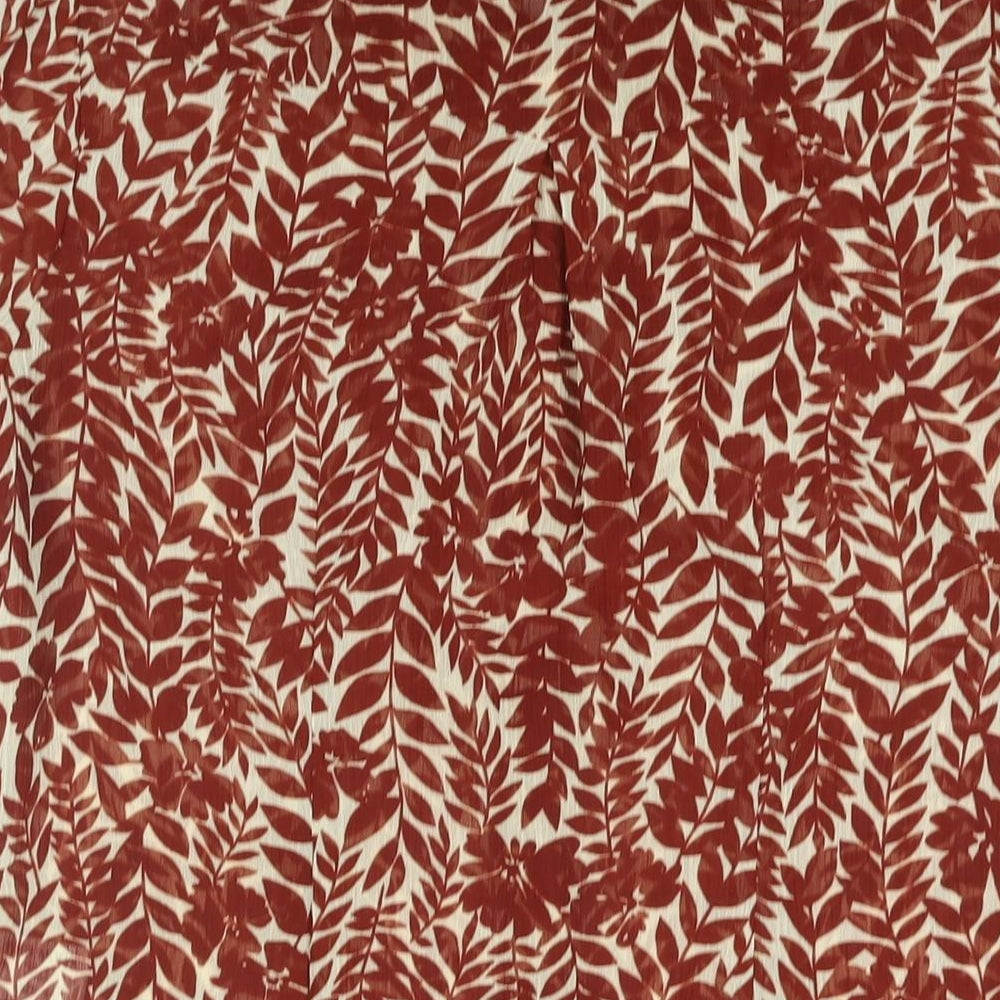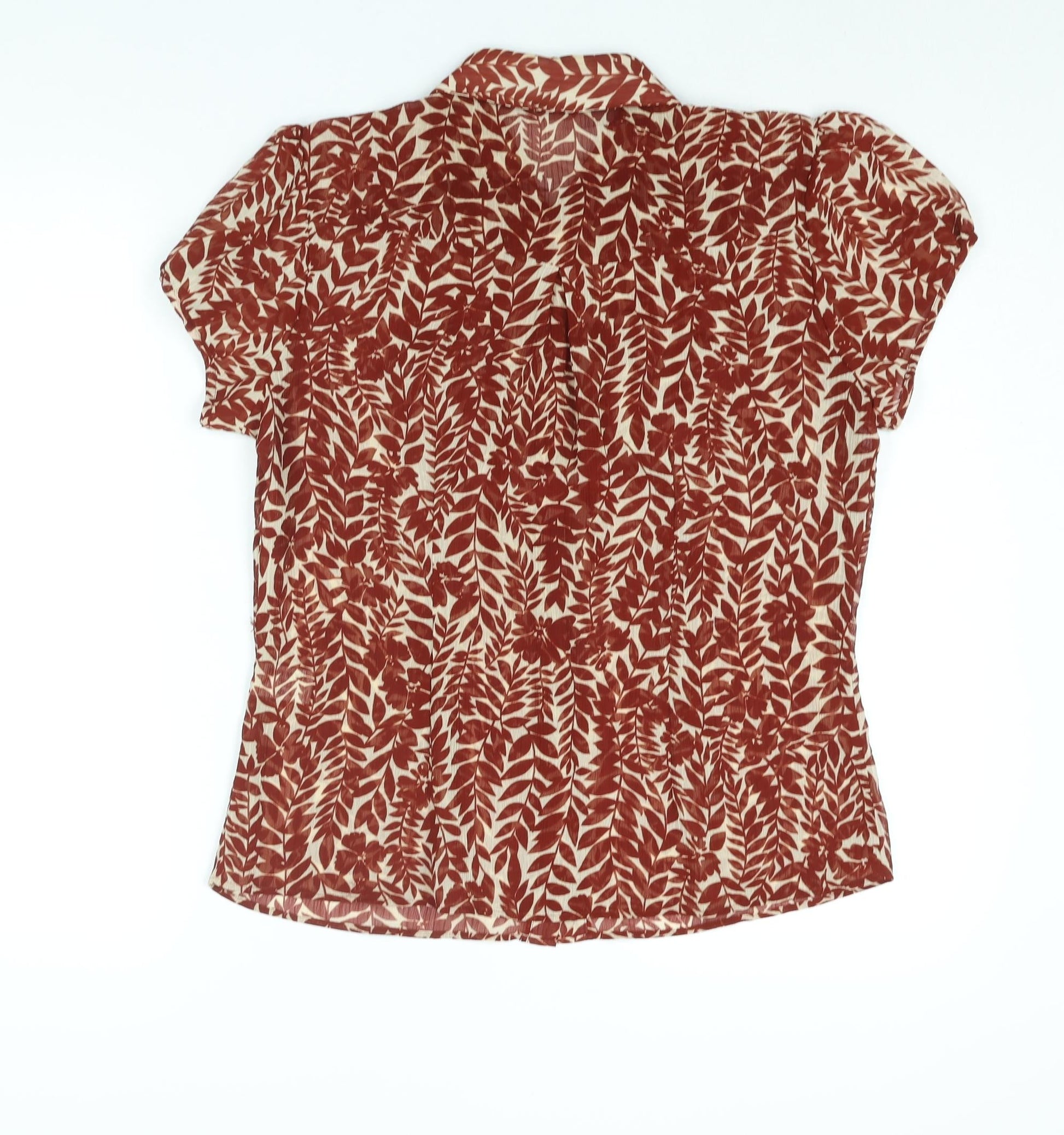 Mia Moda Womens Brown Geometric Polyester Basic Blouse Size 14 Collared