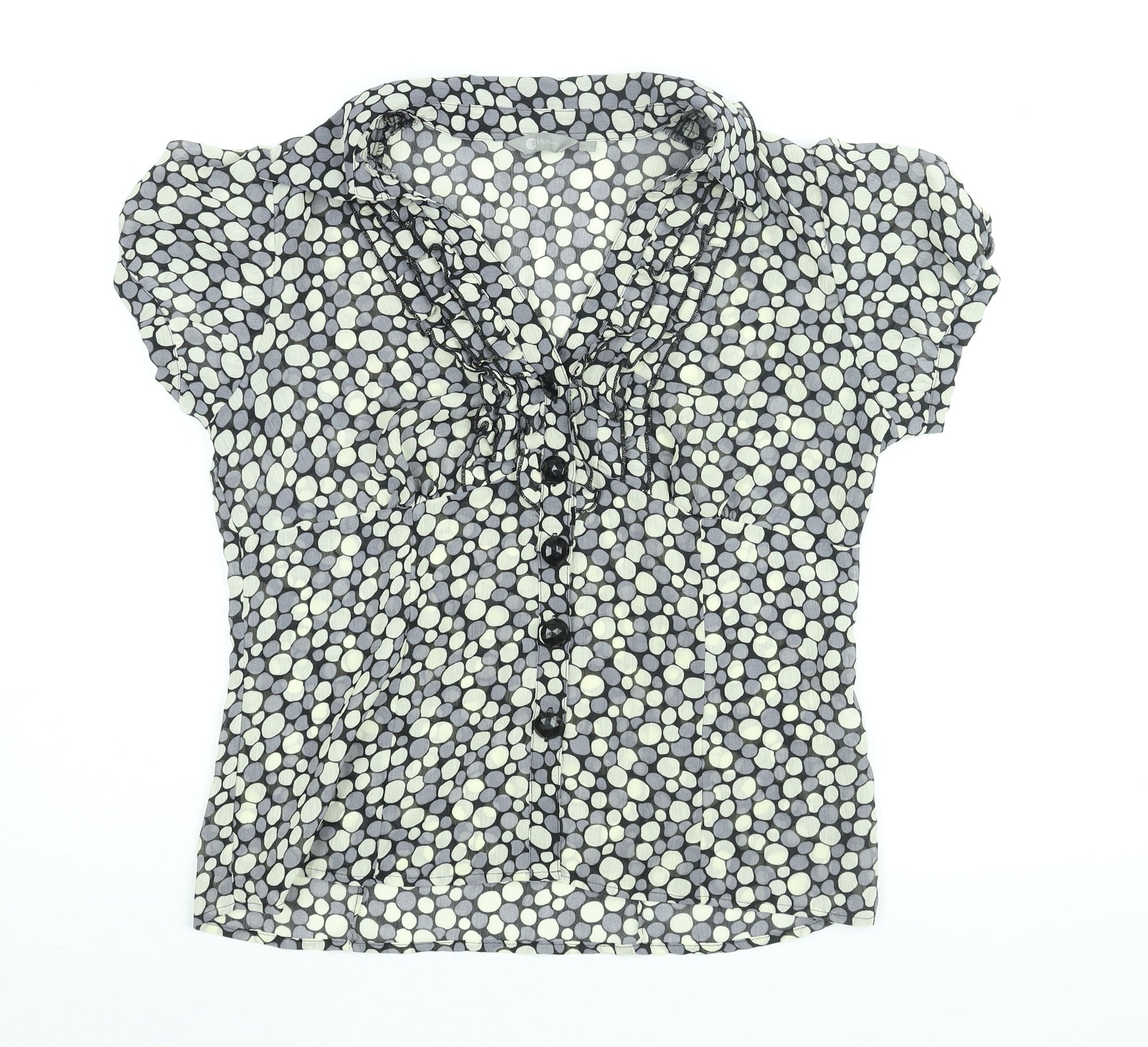 Mia Moda Womens Grey Geometric Polyester Basic Blouse Size 16 Collared - Frill