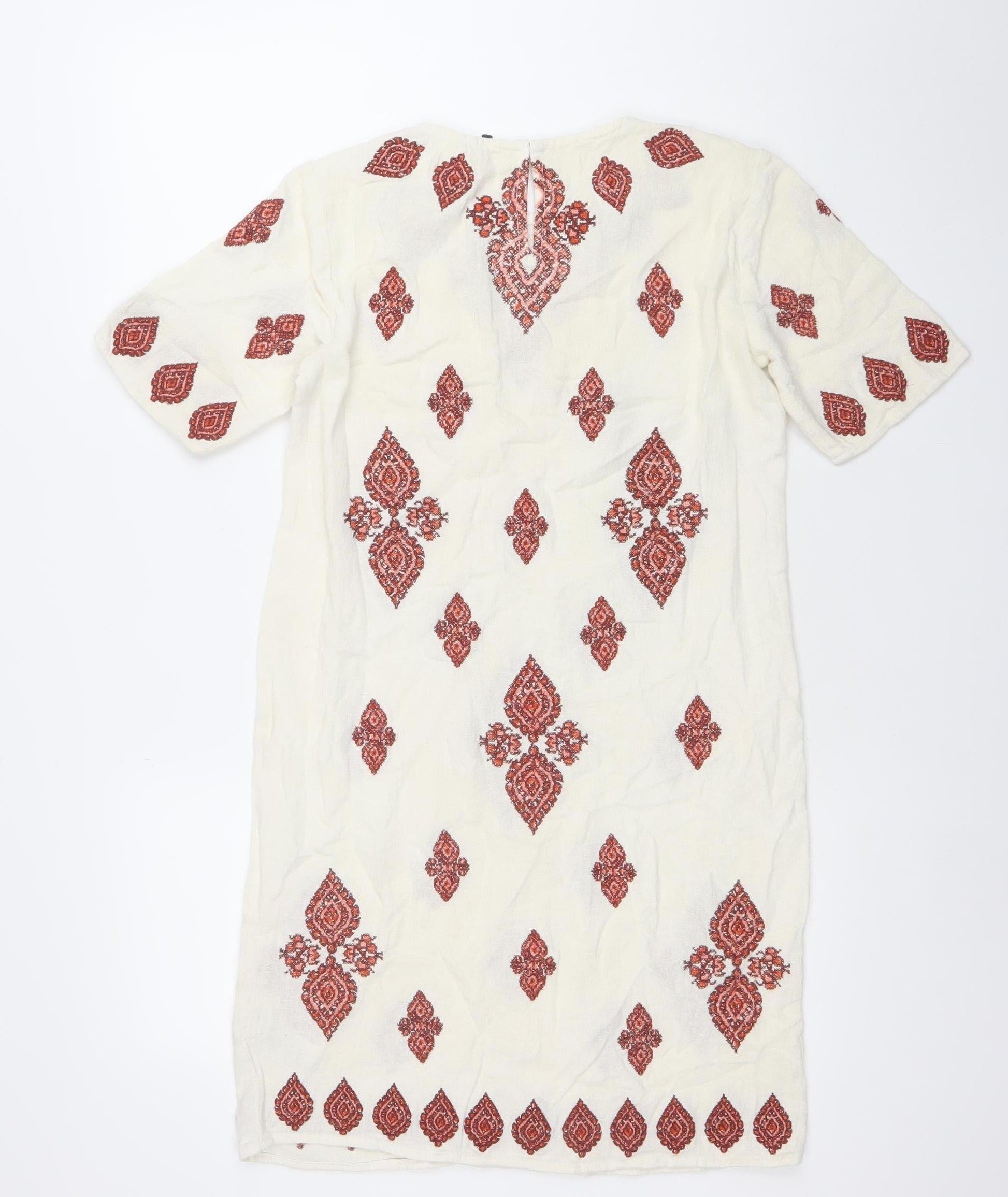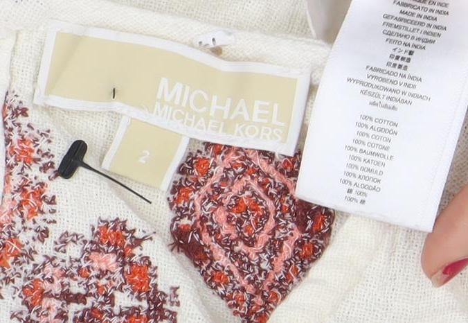 Michael Kors Women Ivory Embroidered Cotton Shift Dress Size 2