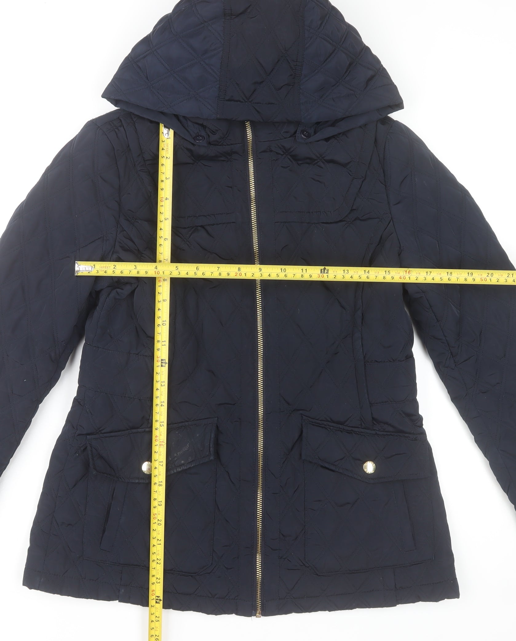 Michael Kors Women's Blue Quilted Hooded Mid-Length Jacket Size S