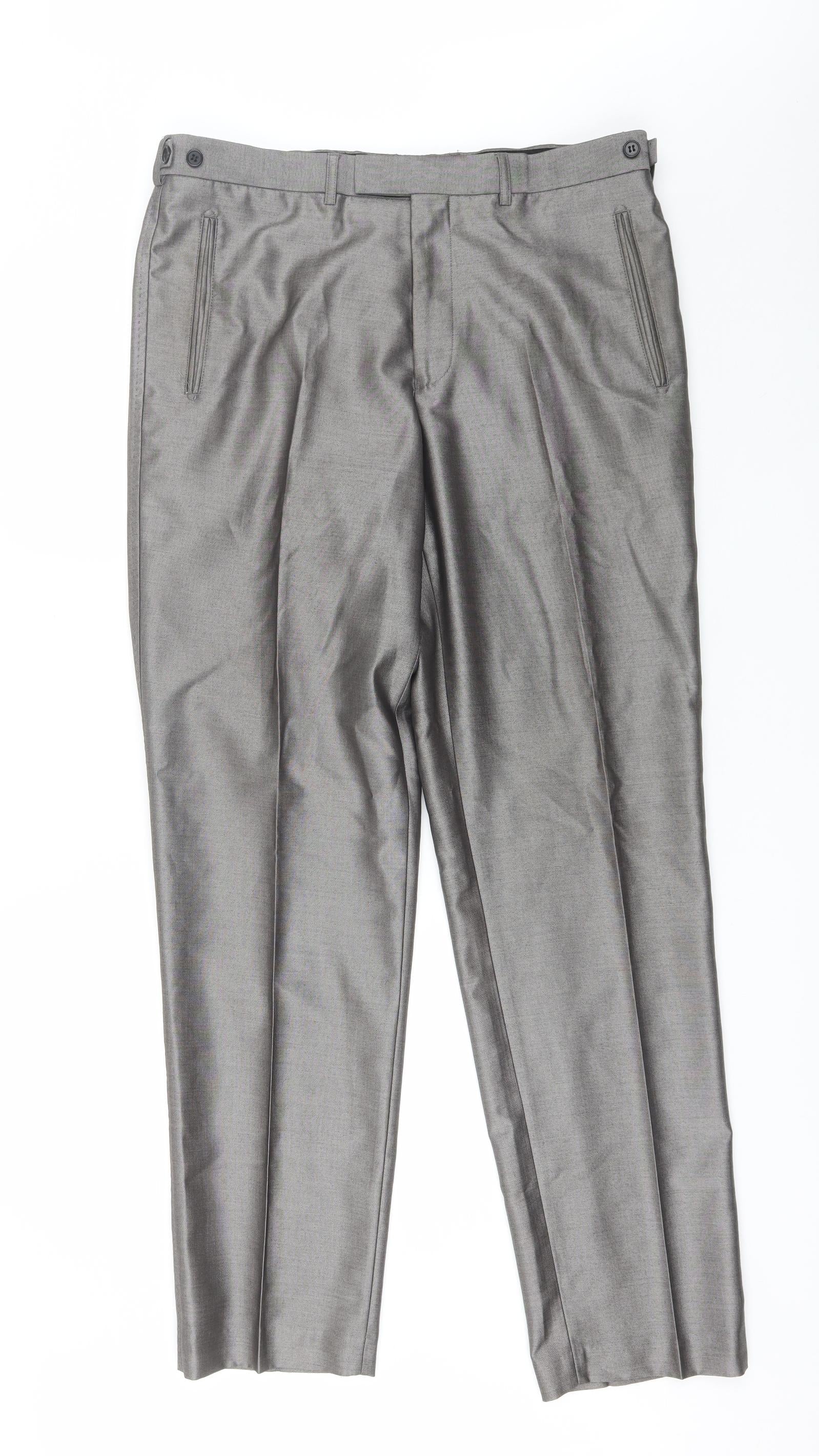 Milan Collection Mens Grey Polyester Dress Pants Trousers Size 36 in L32 in Regular