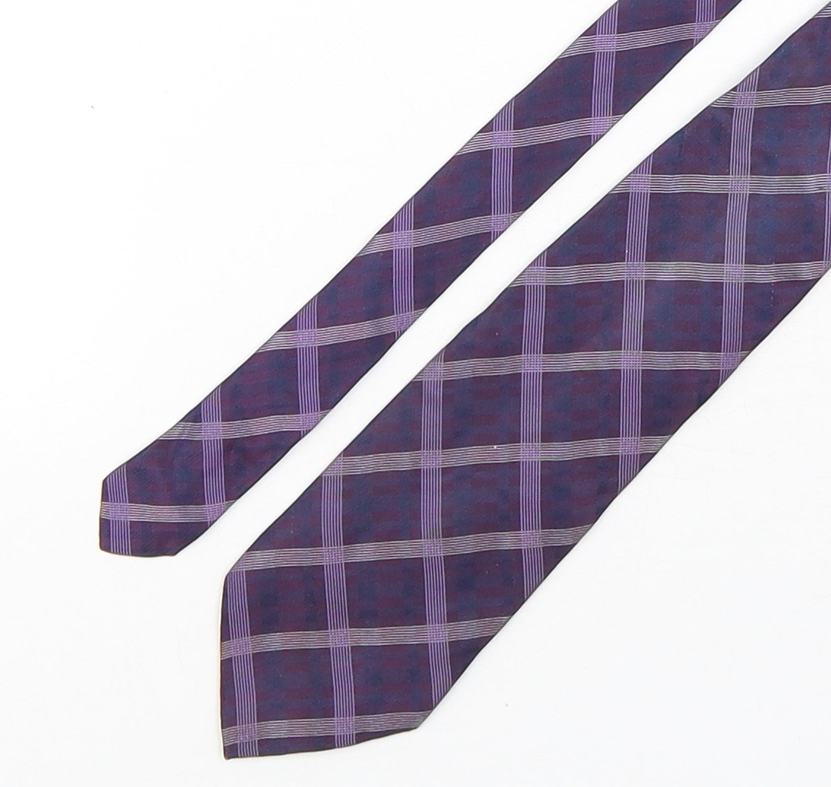 Milan Mens Purple Plaids & Checks Silk Pointed Tie One Size