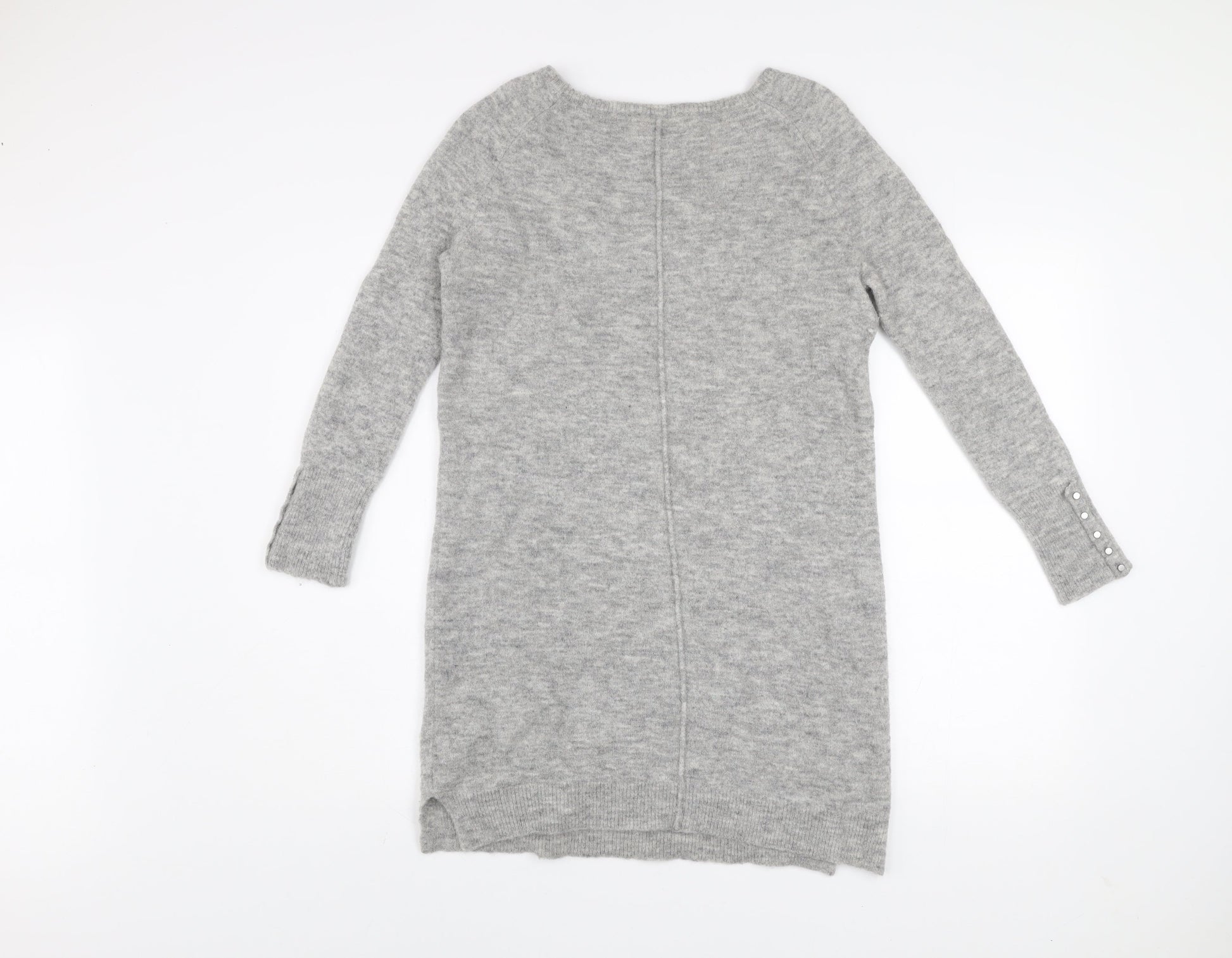 Mint Velvet Women Grey Size 10 Jumper Dress Wool Blend Long Sleeve