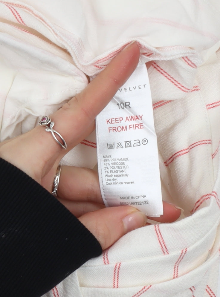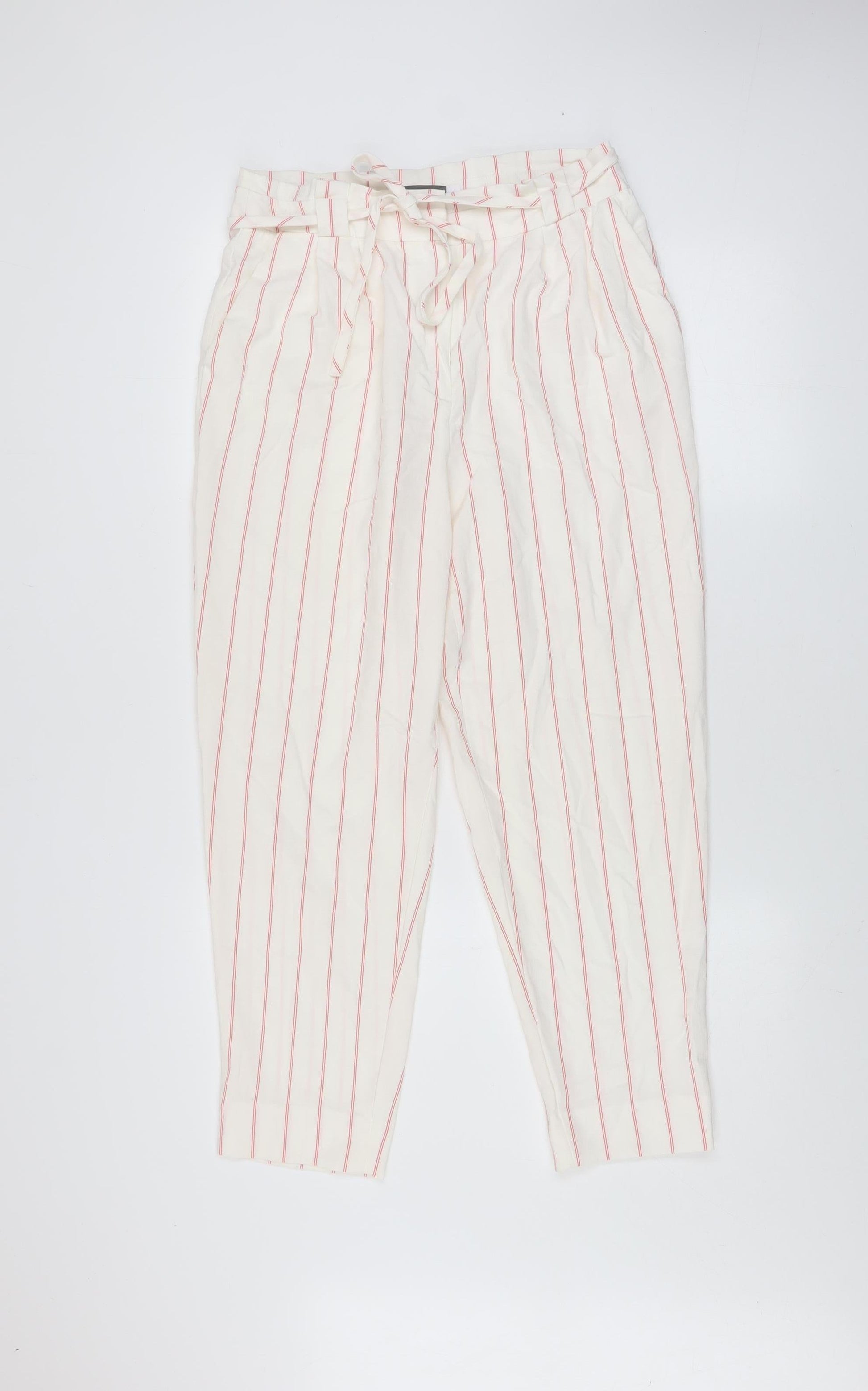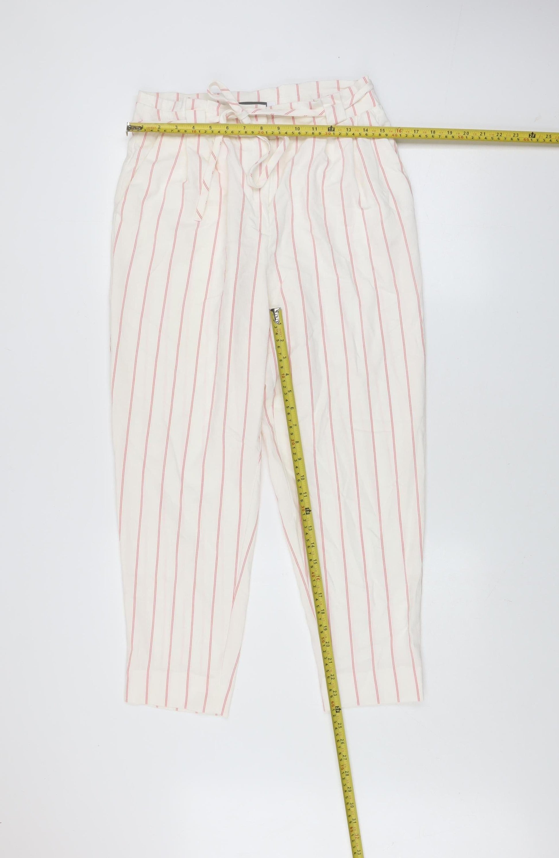 Mint Velvet Women Ivory Striped Paperbag Tapered Trousers Size 10