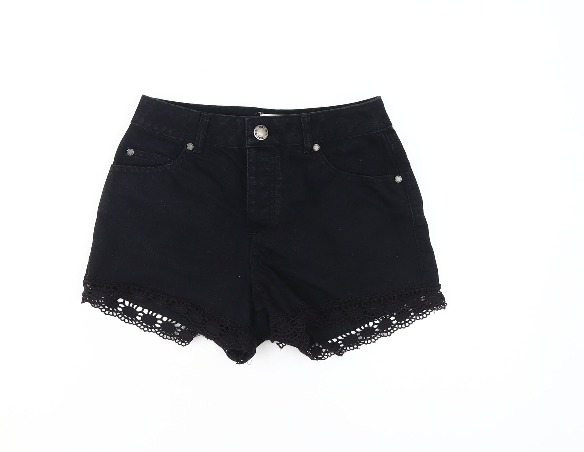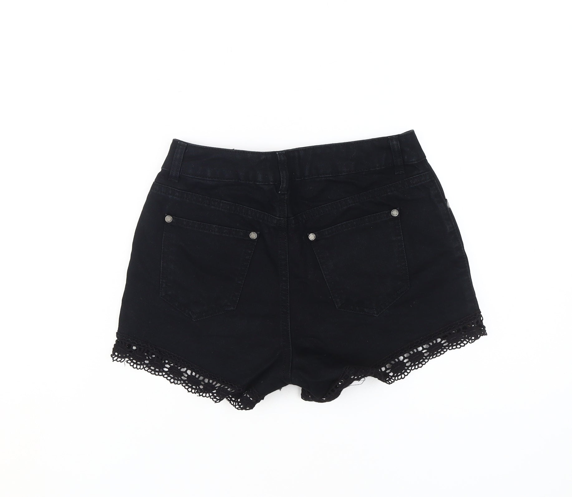 Miss Selfridge Black Crochet Denim Shorts - Women Size 8