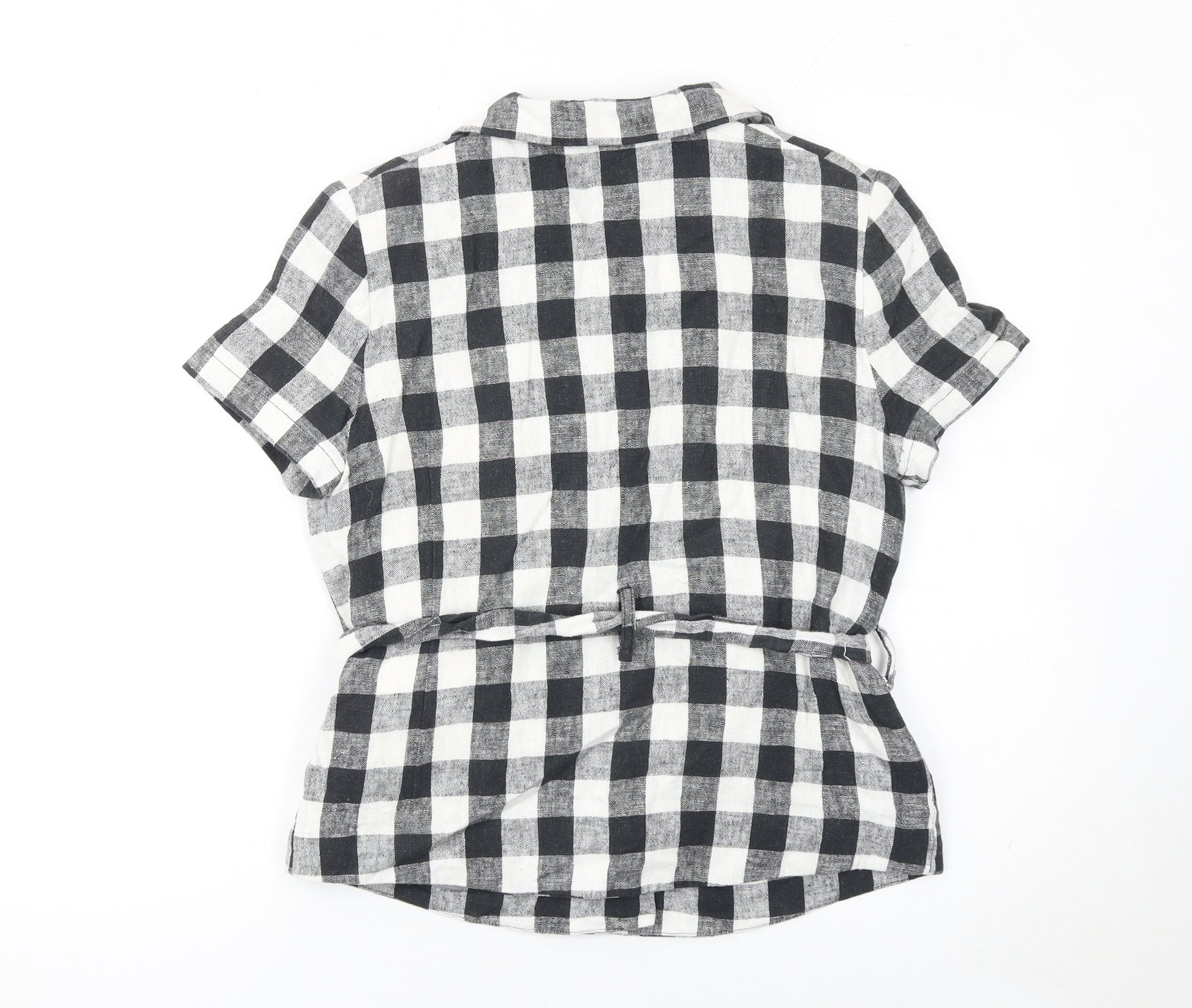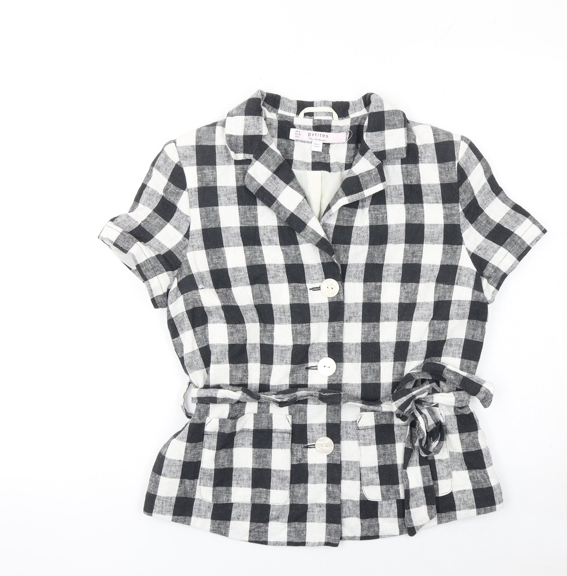 Miss Selfridge Petites Black Check Linen Blend Short Sleeve Blazer UK 8