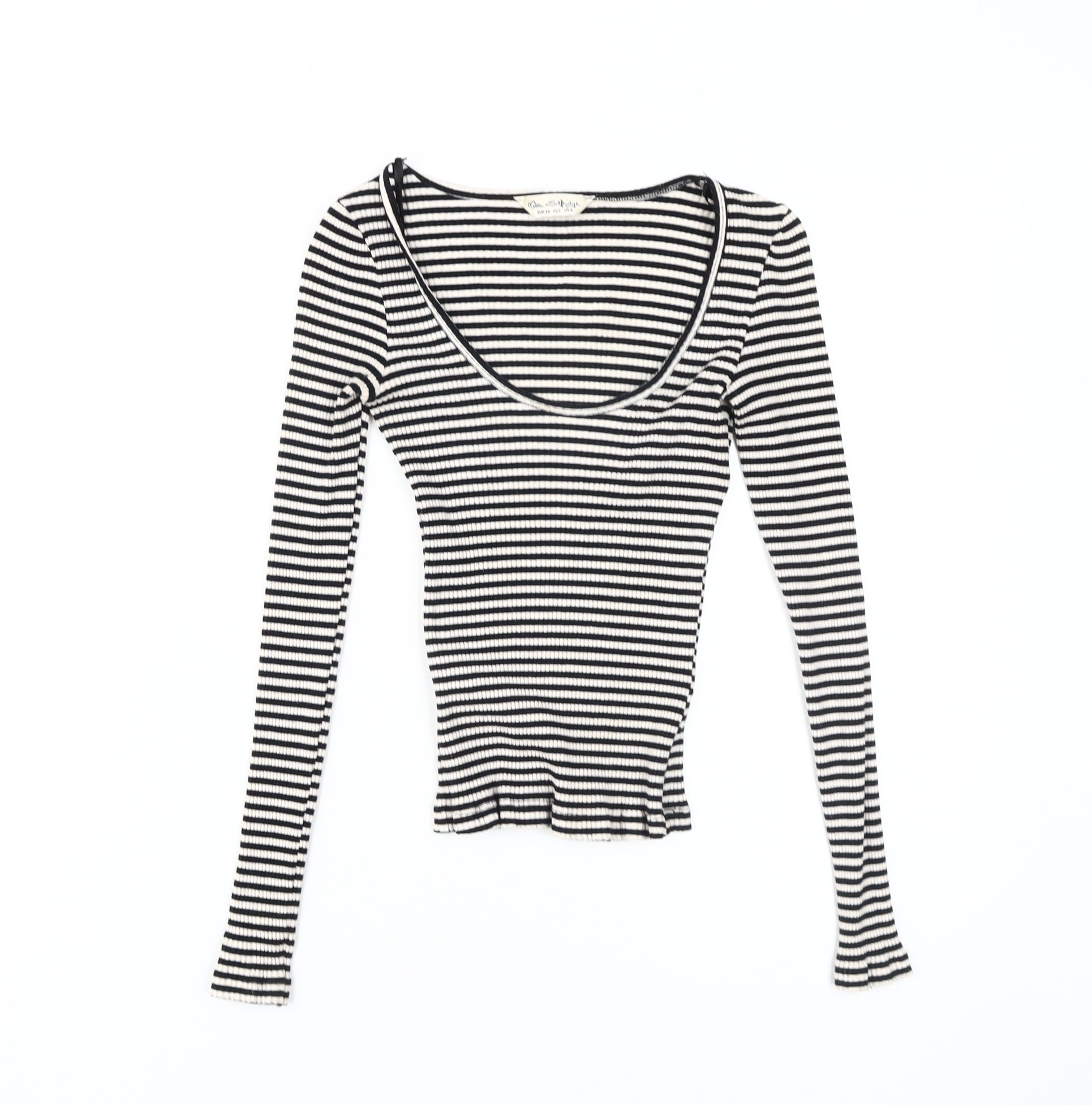 Miss Selfridge Women Black Cropped Stripe T-Shirt Size 6