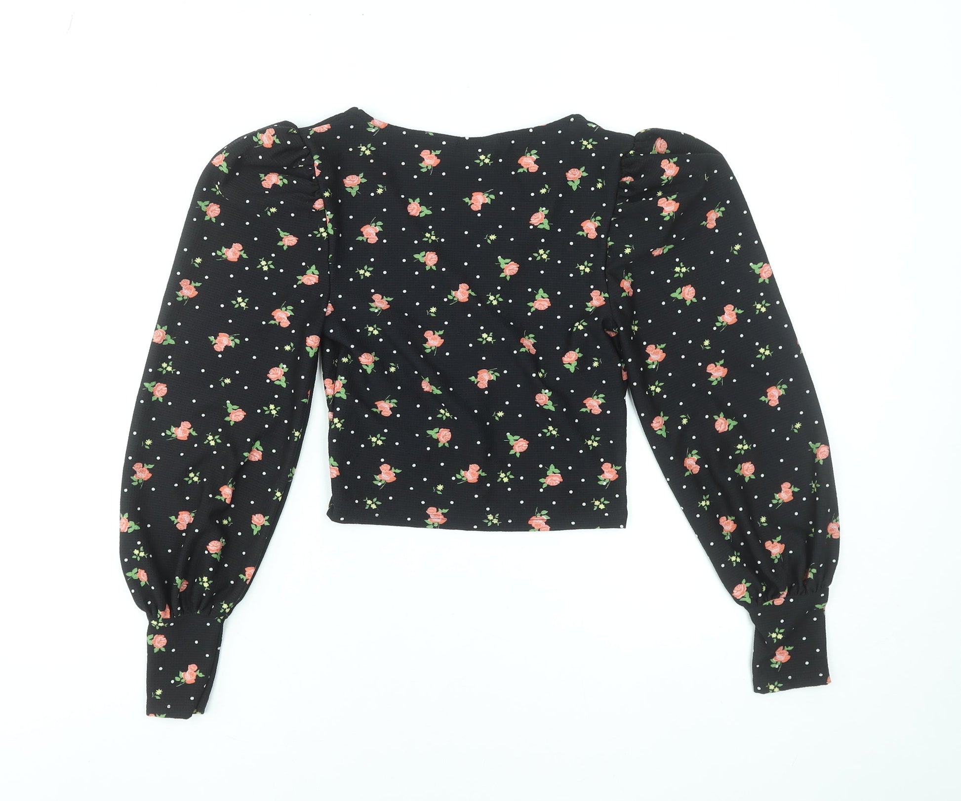 Miss Selfridge Women Black Floral V-Neck Cropped Blouse UK 4