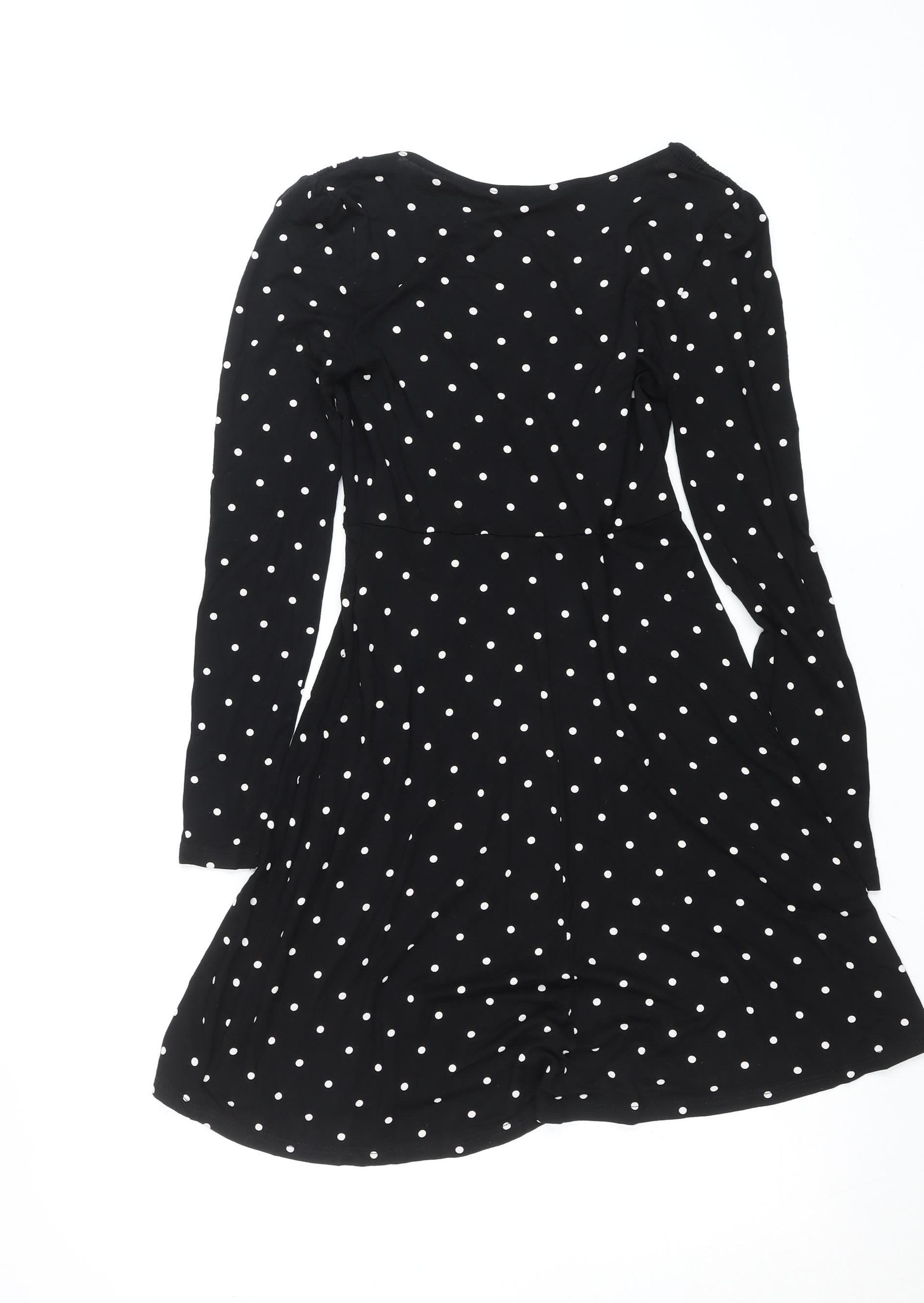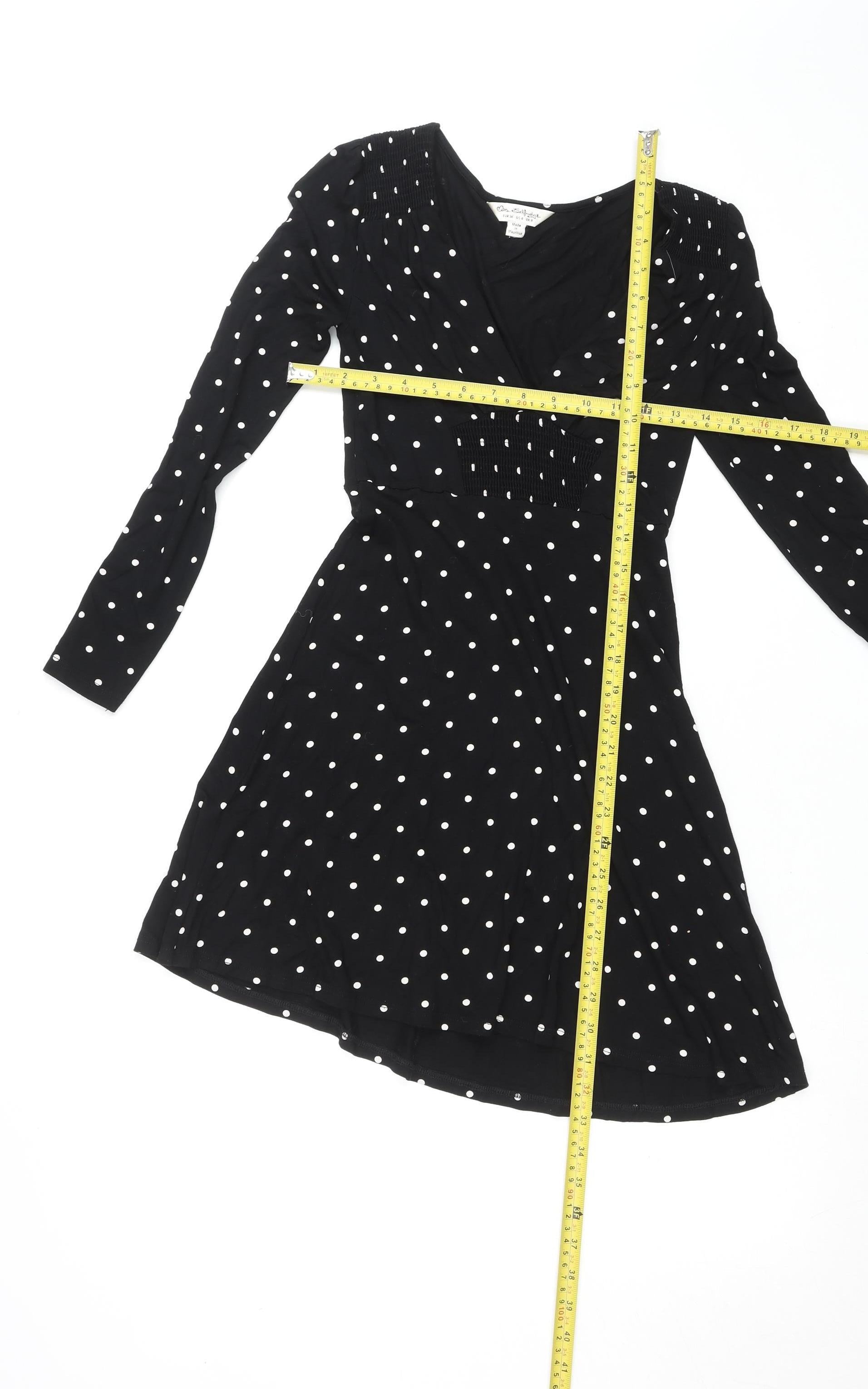 Miss Selfridge Women Black Polka Dot V-Neck Fit & Flare Dress Size 8