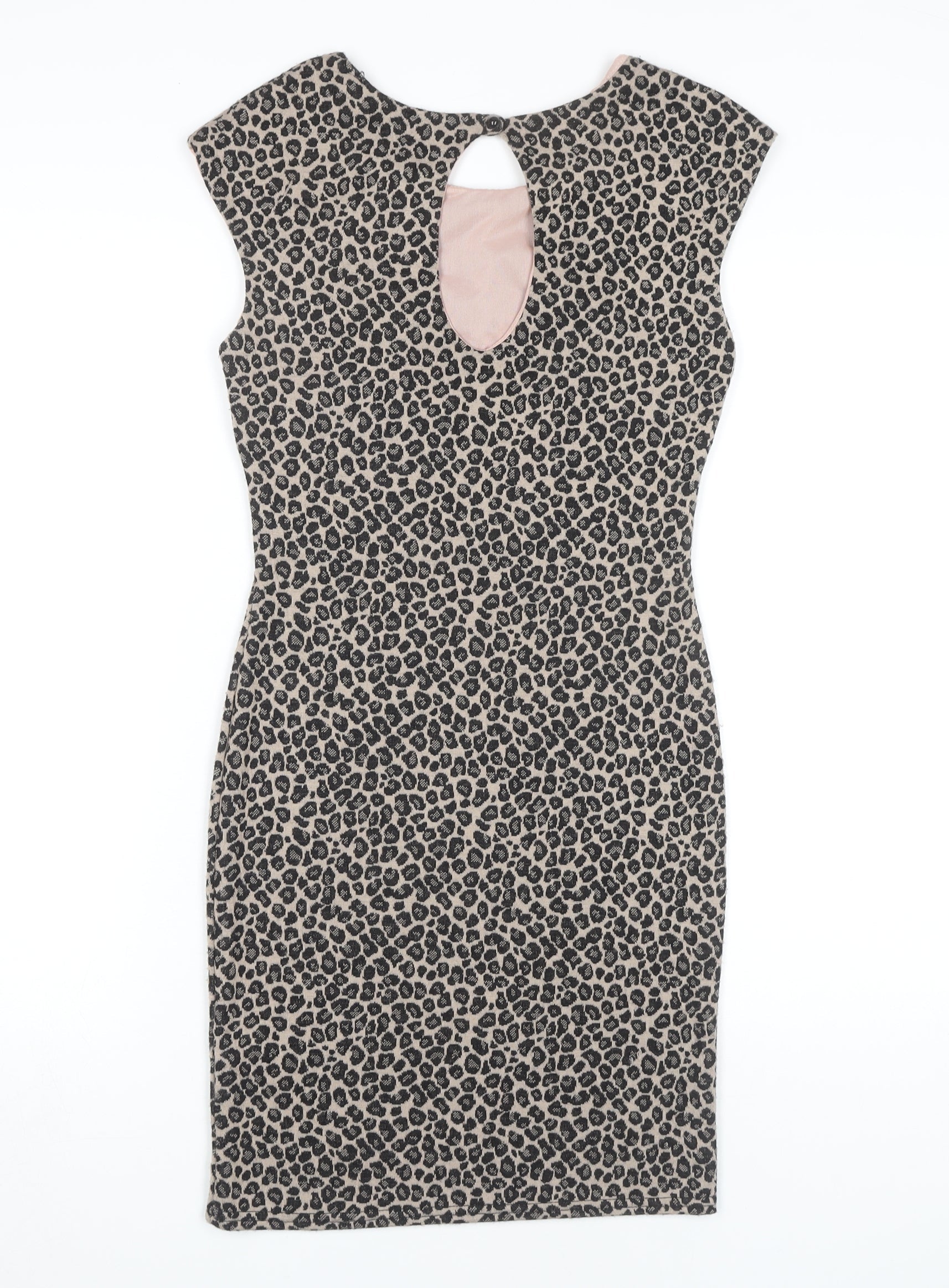 Miss Selfridge Women’s Beige Leopard Bodycon Dress Size 8