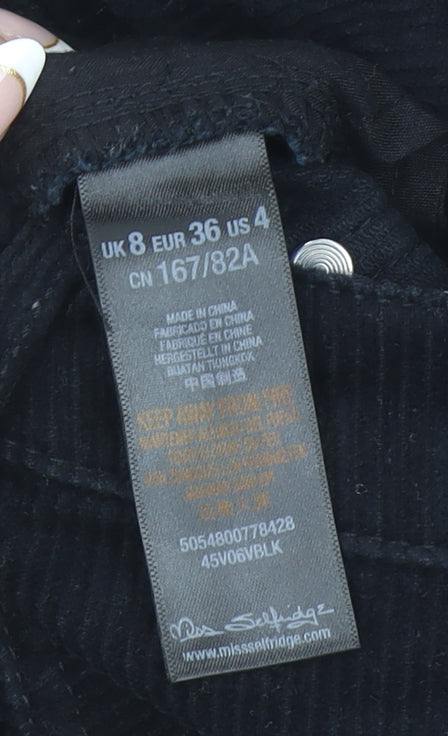 Miss Selfridge Women’s Black Corduroy A-Line Mini Skirt Size 8