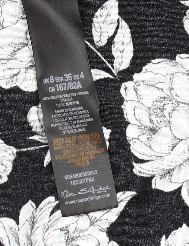 Miss Selfridge Women’s Black Floral Shirt Dress Size 8 Viscose