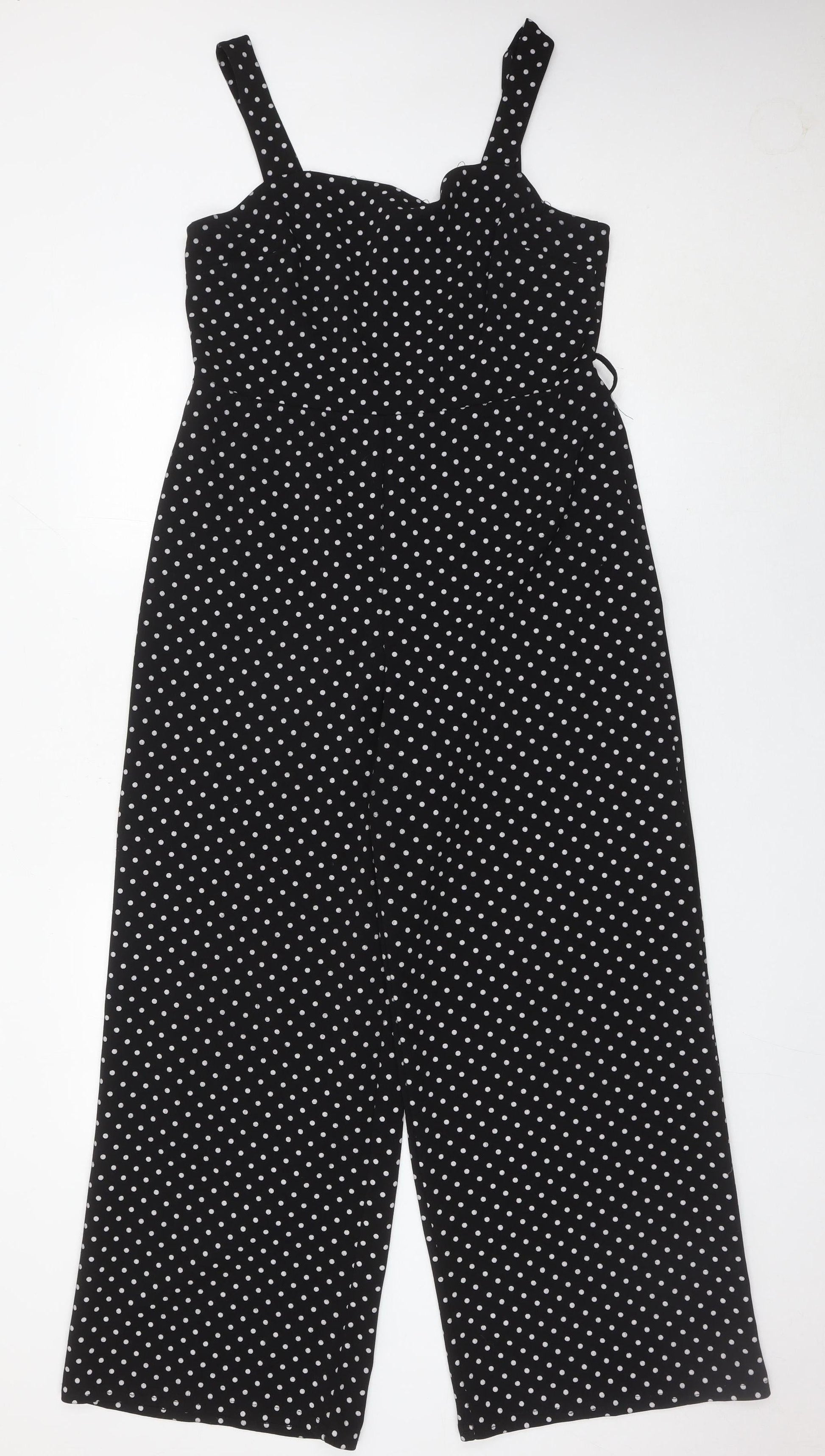 Miss Selfridge Women’s Black Polka Dot Wide-Leg Sleeveless Jumpsuit UK12