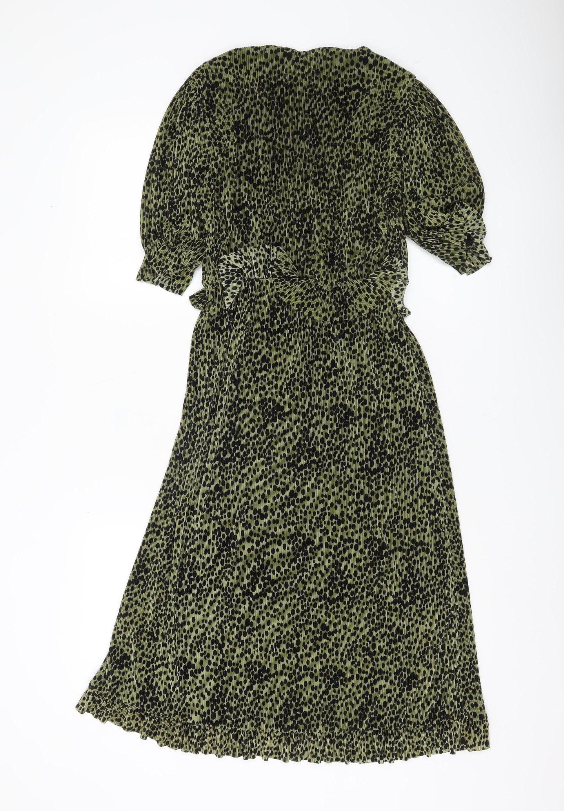 Miss Selfridge Women’s Green Animal Print Midi Dress Size 8