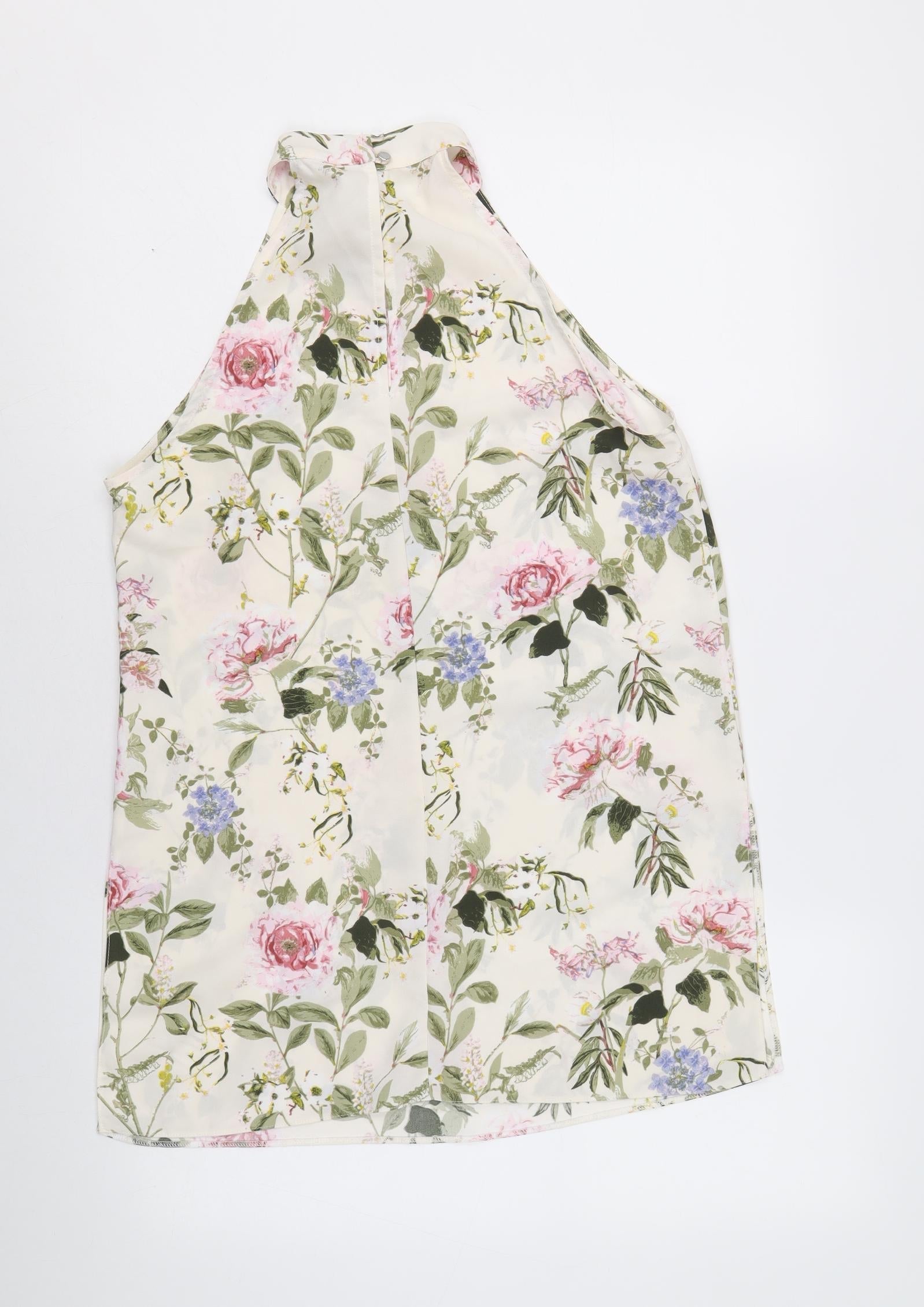 Miss Selfridge Womens Beige Floral Polyester Basic Blouse Size 10 Halter