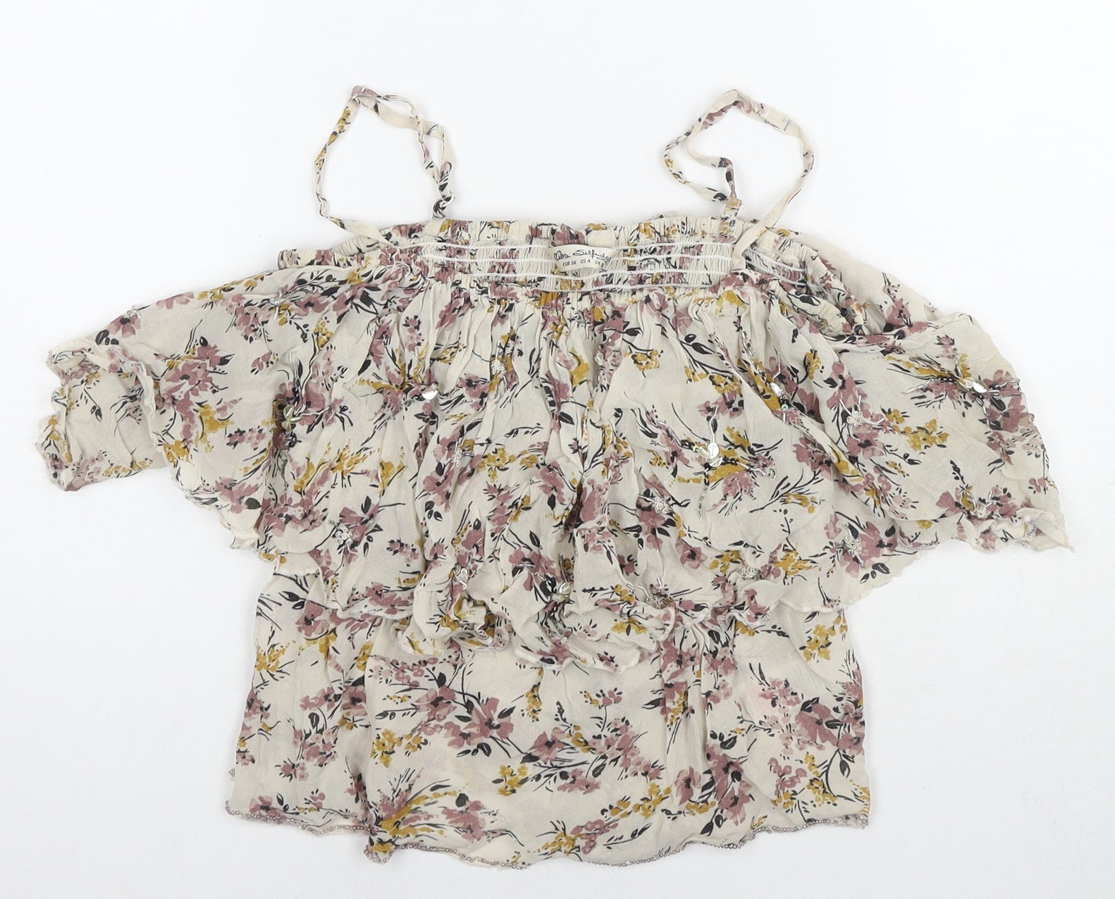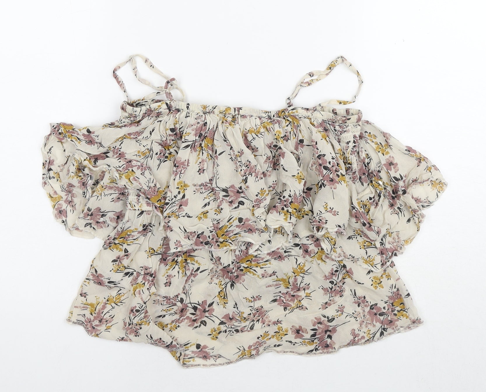 Miss Selfridge Womens Beige Floral Viscose Basic Blouse Size 8 Off the Shoulder - Beaded Detail Cold Shoulder