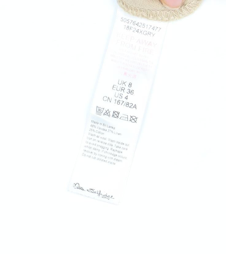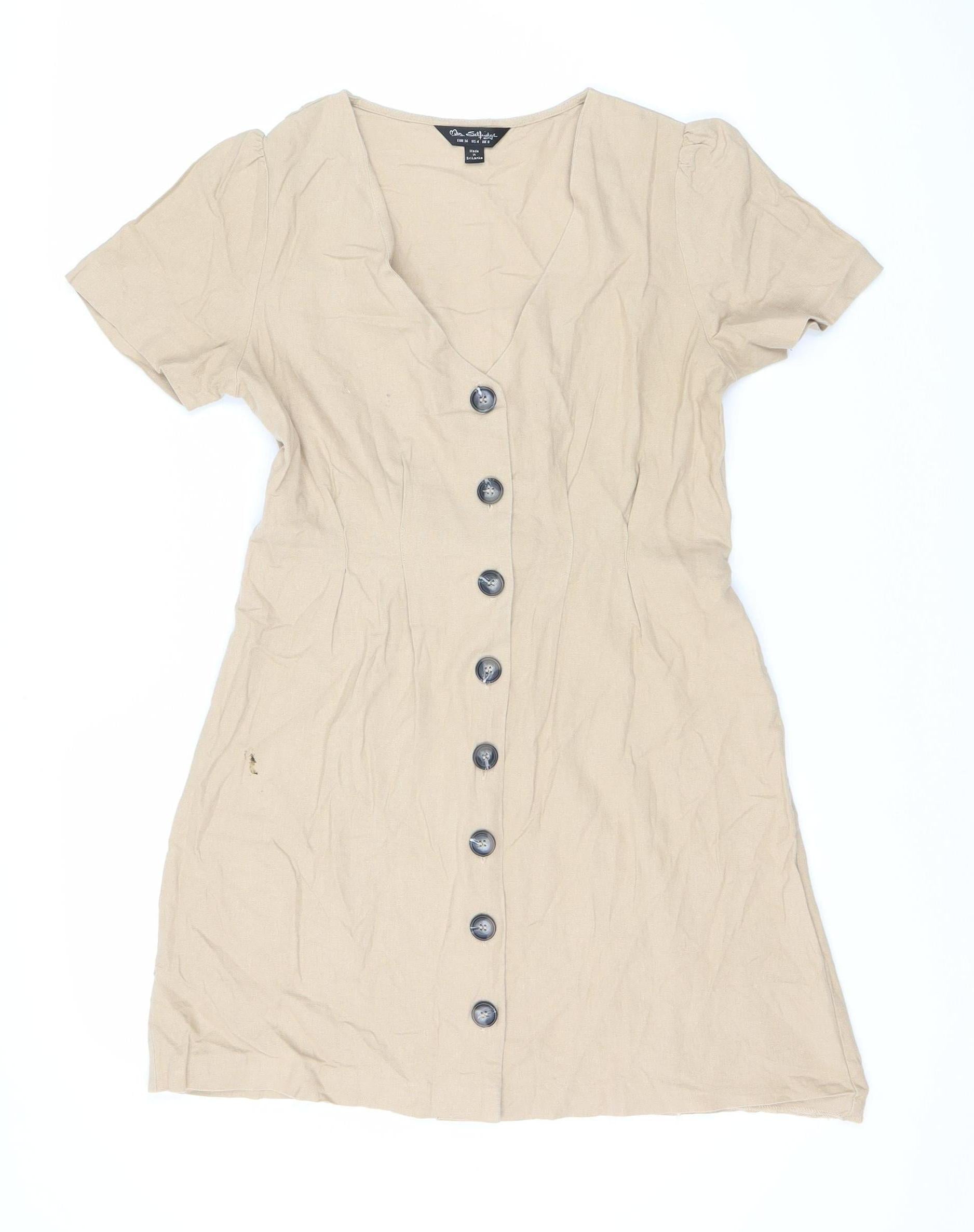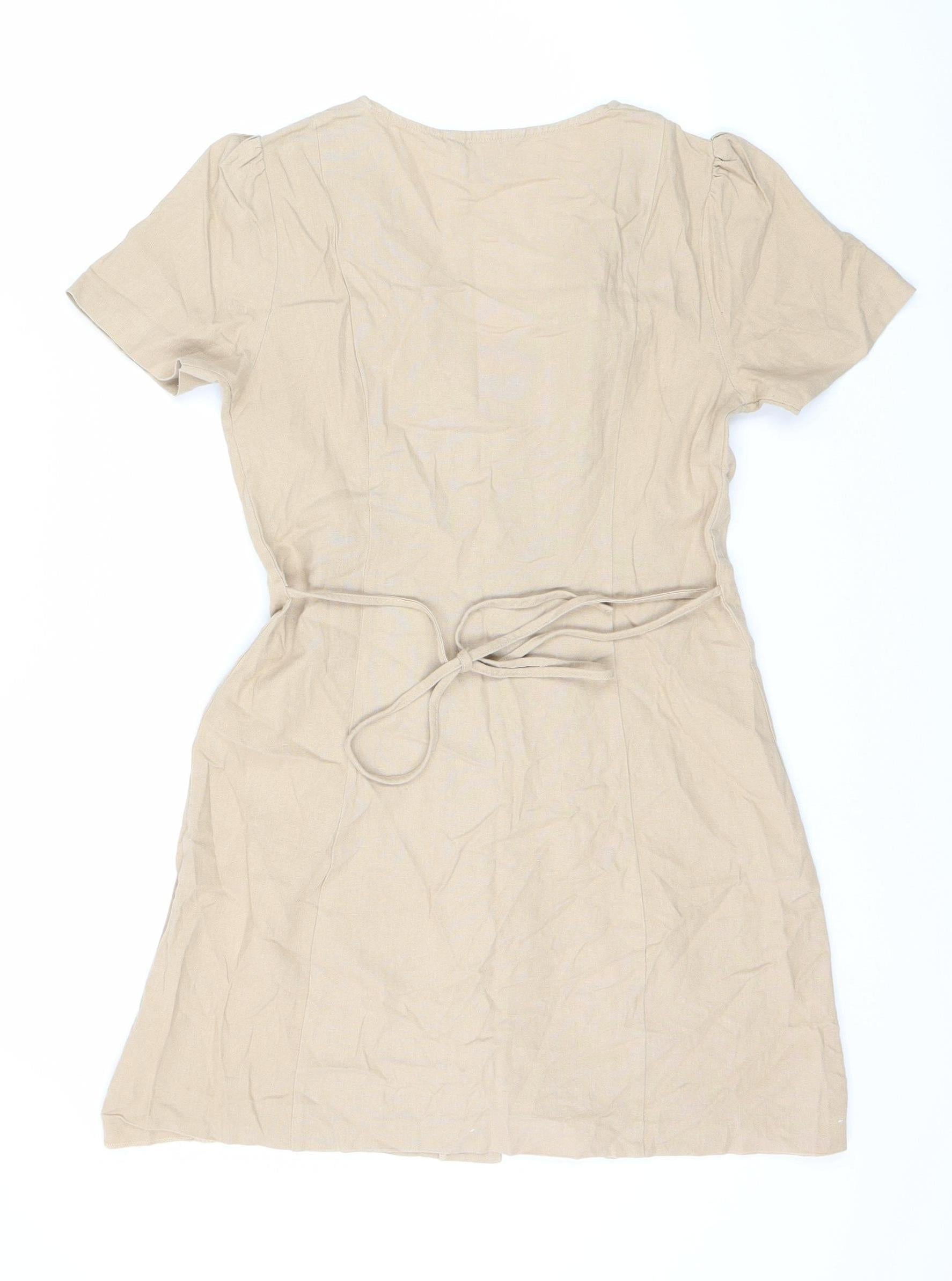 Miss Selfridge Women's Beige Linen Button Dress Size 8