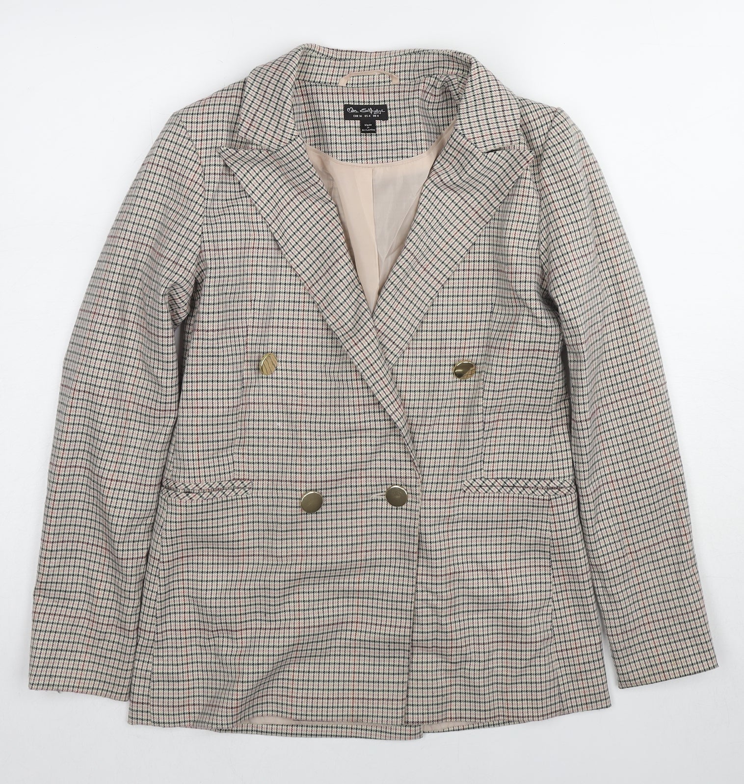 Miss Selfridge Womens Beige Plaid Polyester Jacket Blazer Size 8