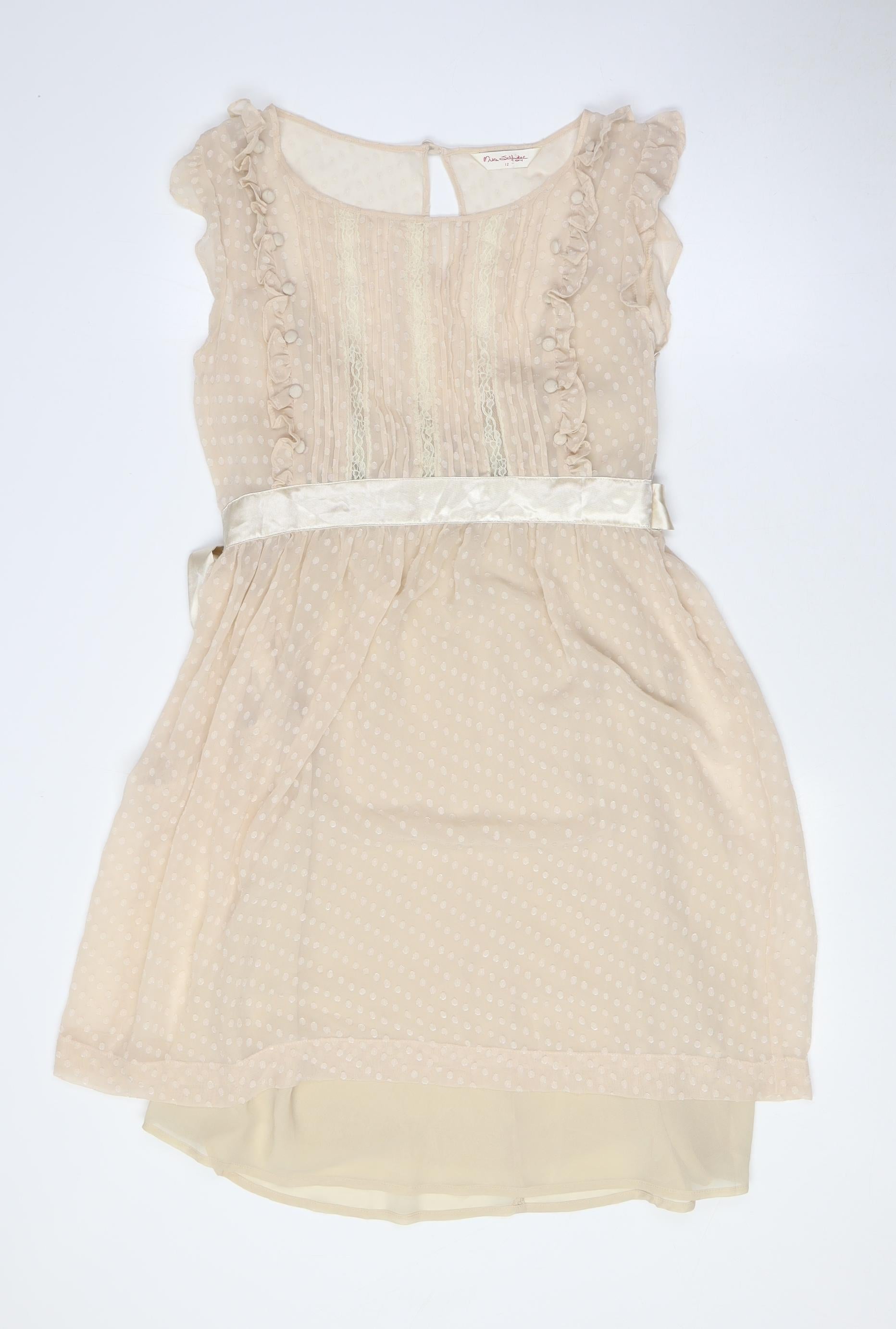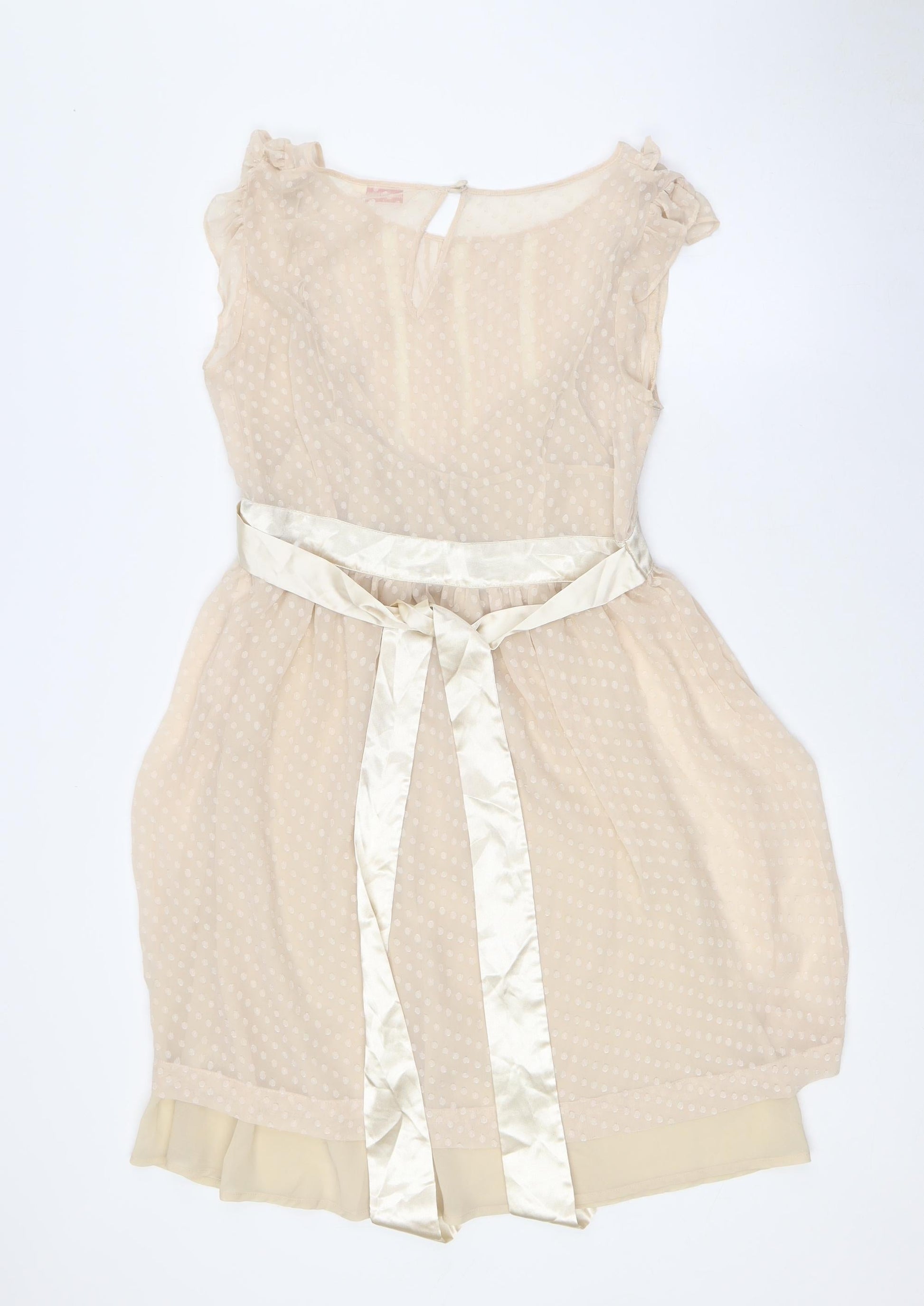 Miss Selfridge Womens Beige Polyester A-Line Size 12 Boat Neck Zip