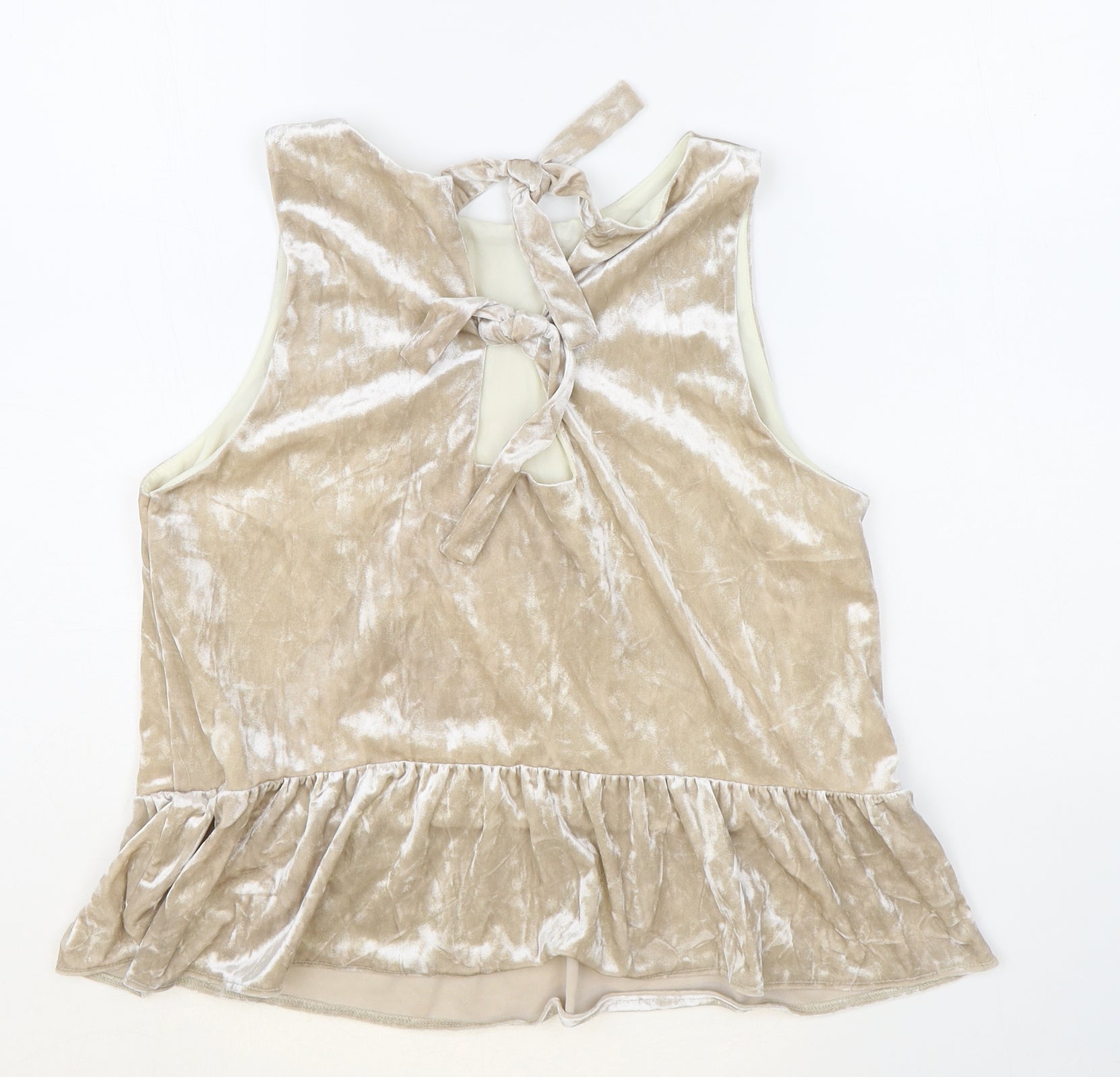 Miss Selfridge Womens Beige Polyester Basic Blouse Size 12 Round Neck
