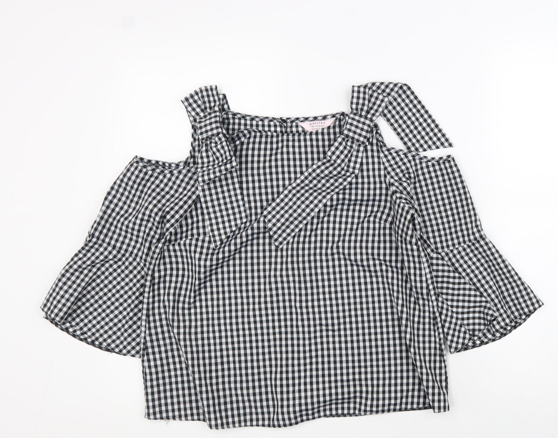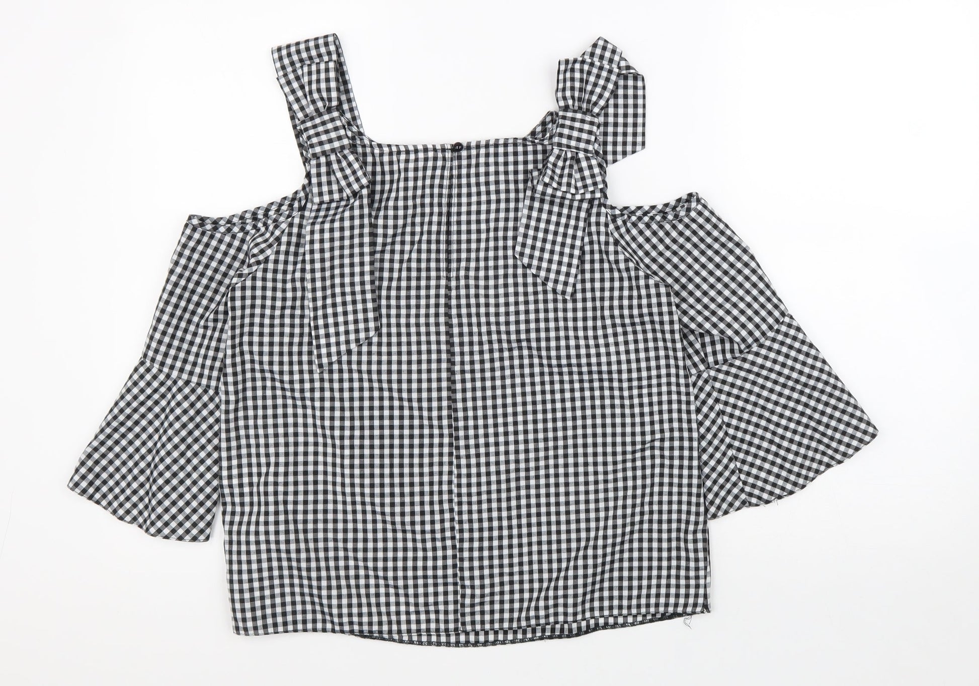 Miss Selfridge Womens Black Check Polyester Basic Blouse Size 8 Off the Shoulder