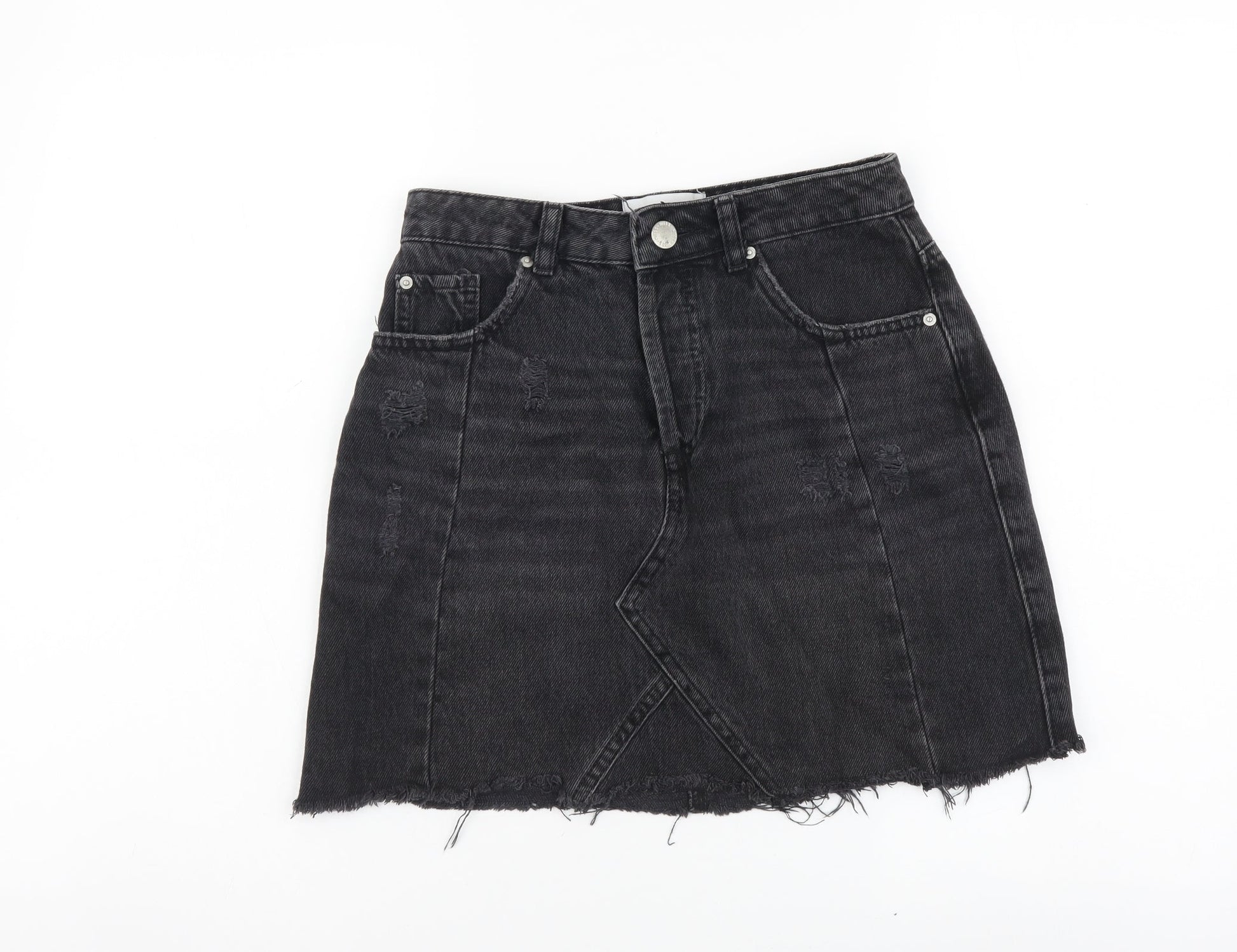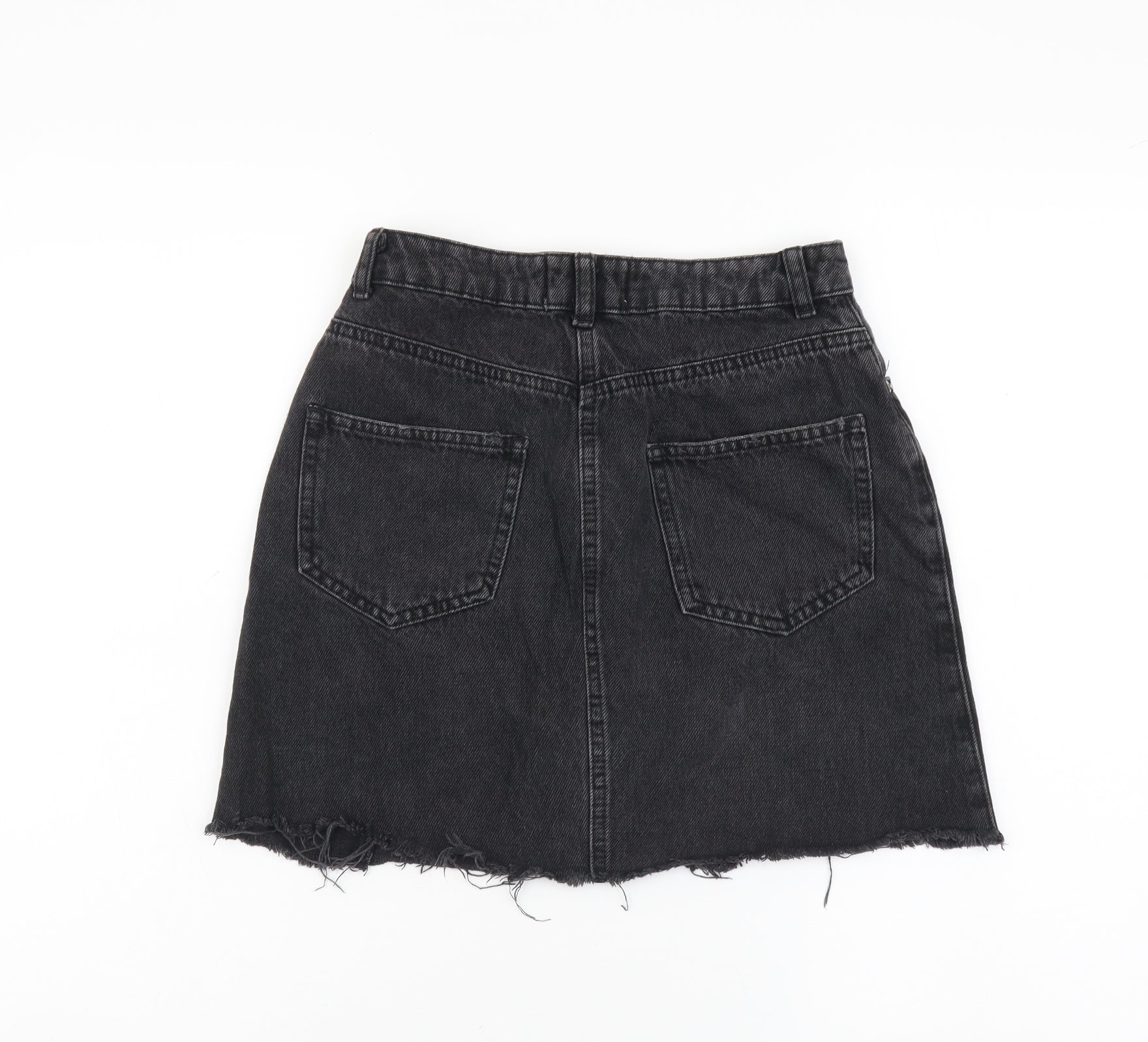 Miss Selfridge Womens Black Cotton A-Line Skirt Size 8 Button