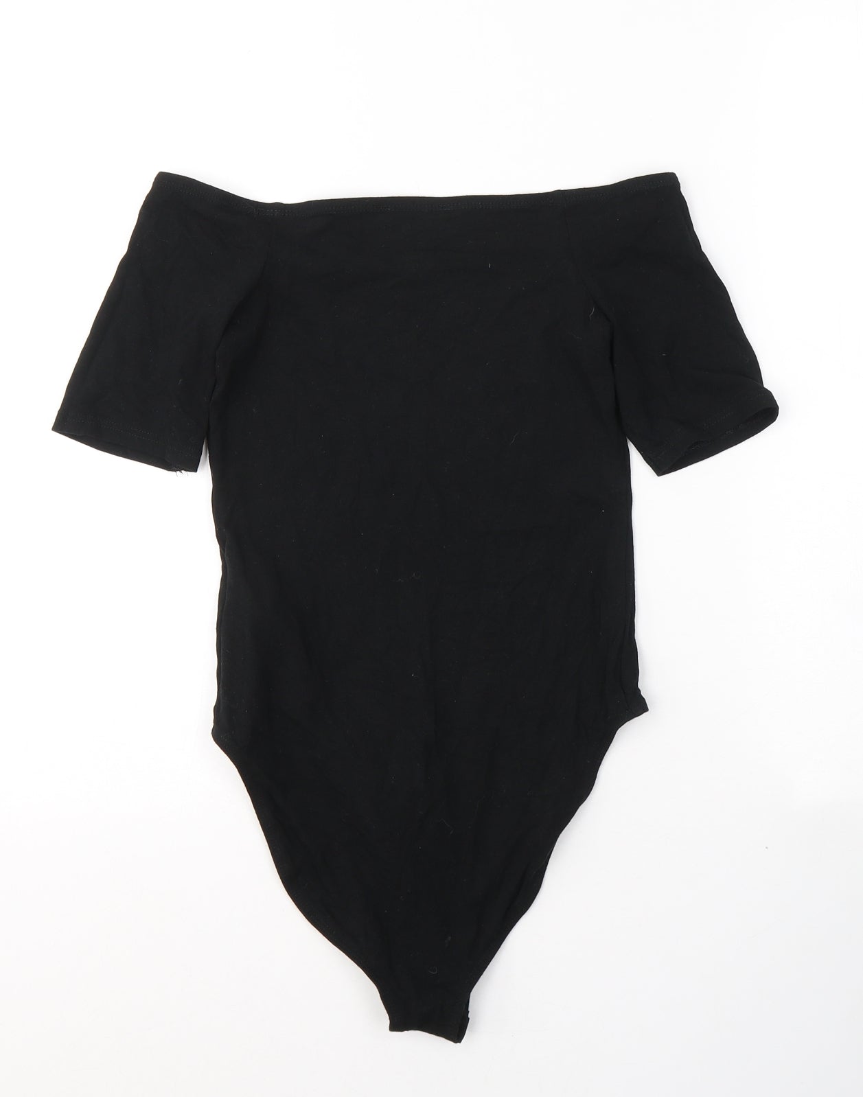 Miss Selfridge Womens Black Cotton Bodysuit One-Piece Size 8 Button